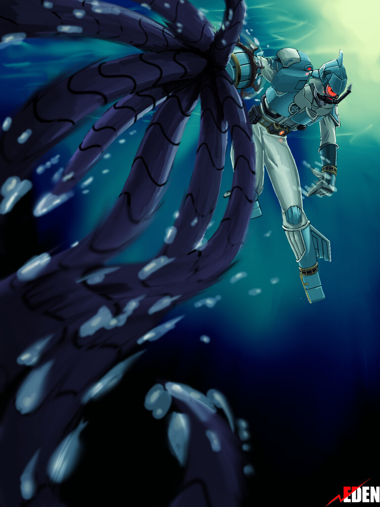 【海戦用形態】に変身し、【水空両用ドローン】による牽制、【右腕から伸びる触手】による捕縛、【胸部から激しい水流を放出する必殺技】による強撃の連続攻撃を与える。