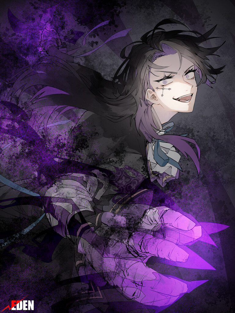【自身、或いは相棒にとっての敵に対する宣告】を語ると、自身から半径レベルm内が、語りの内容を反映した【敵の逃走を阻む、魔焔の竜胆による花の檻】に変わる。この中では自身が物語の主人公となり、攻撃は射程が届く限り全て必中となる。