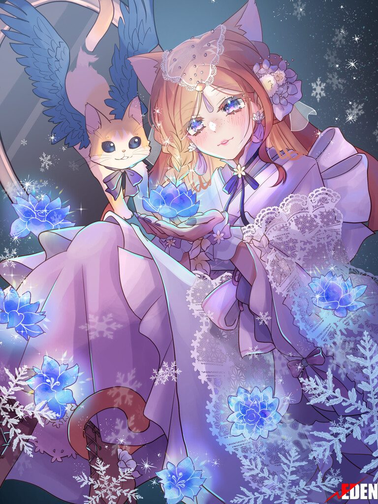 ピュリュの意味は吹雪。蒼焔は火粉の代わりに雪燐を伴い、主の望む相手へと焔を灯す。