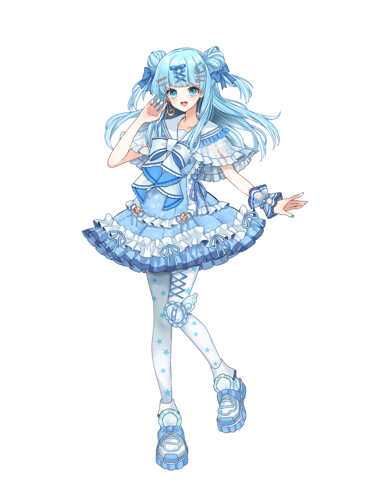 外見: 青い瞳、青髪、色白の肌