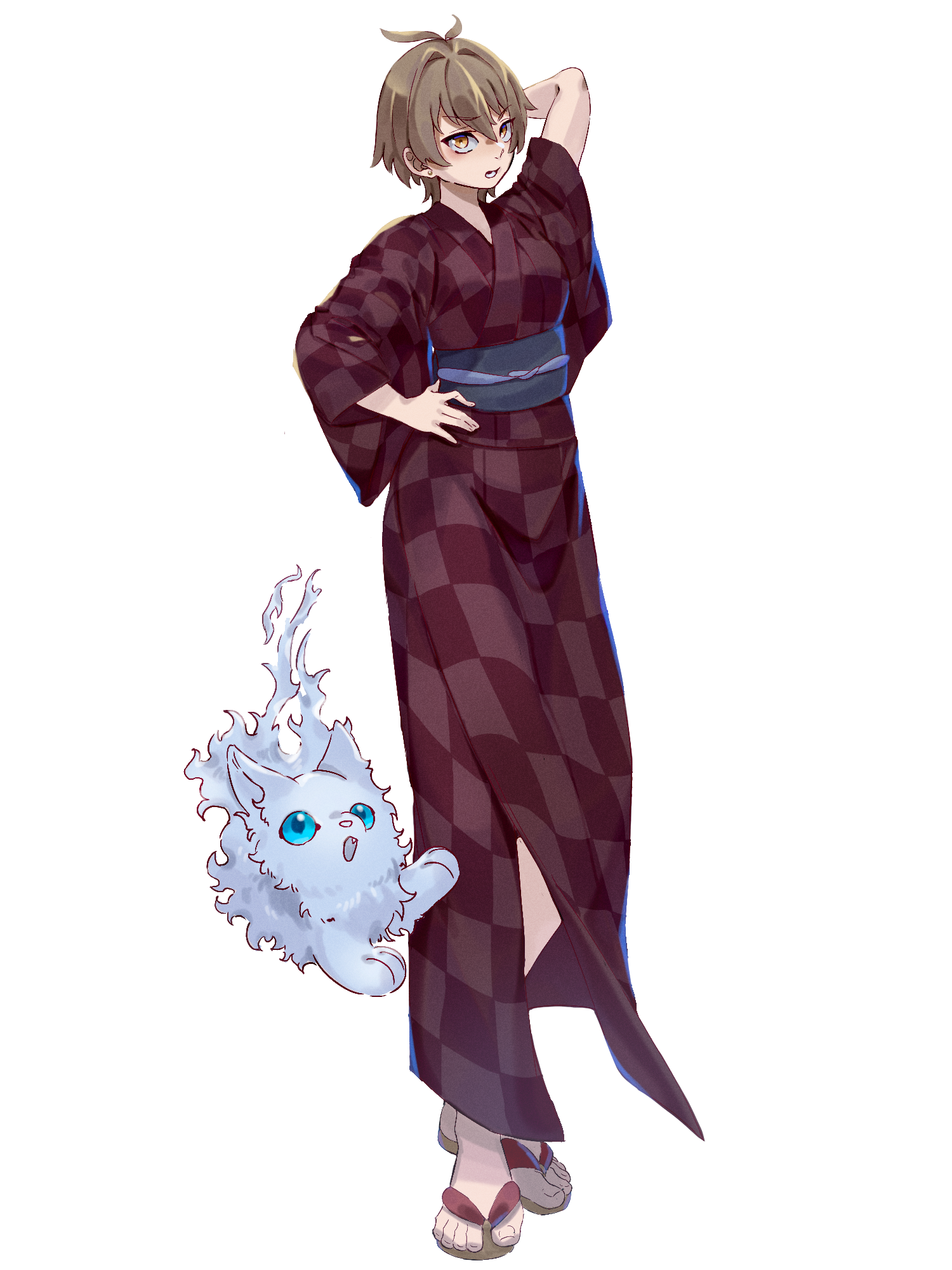 外見: 金の瞳、茶色の髪、普通の肌