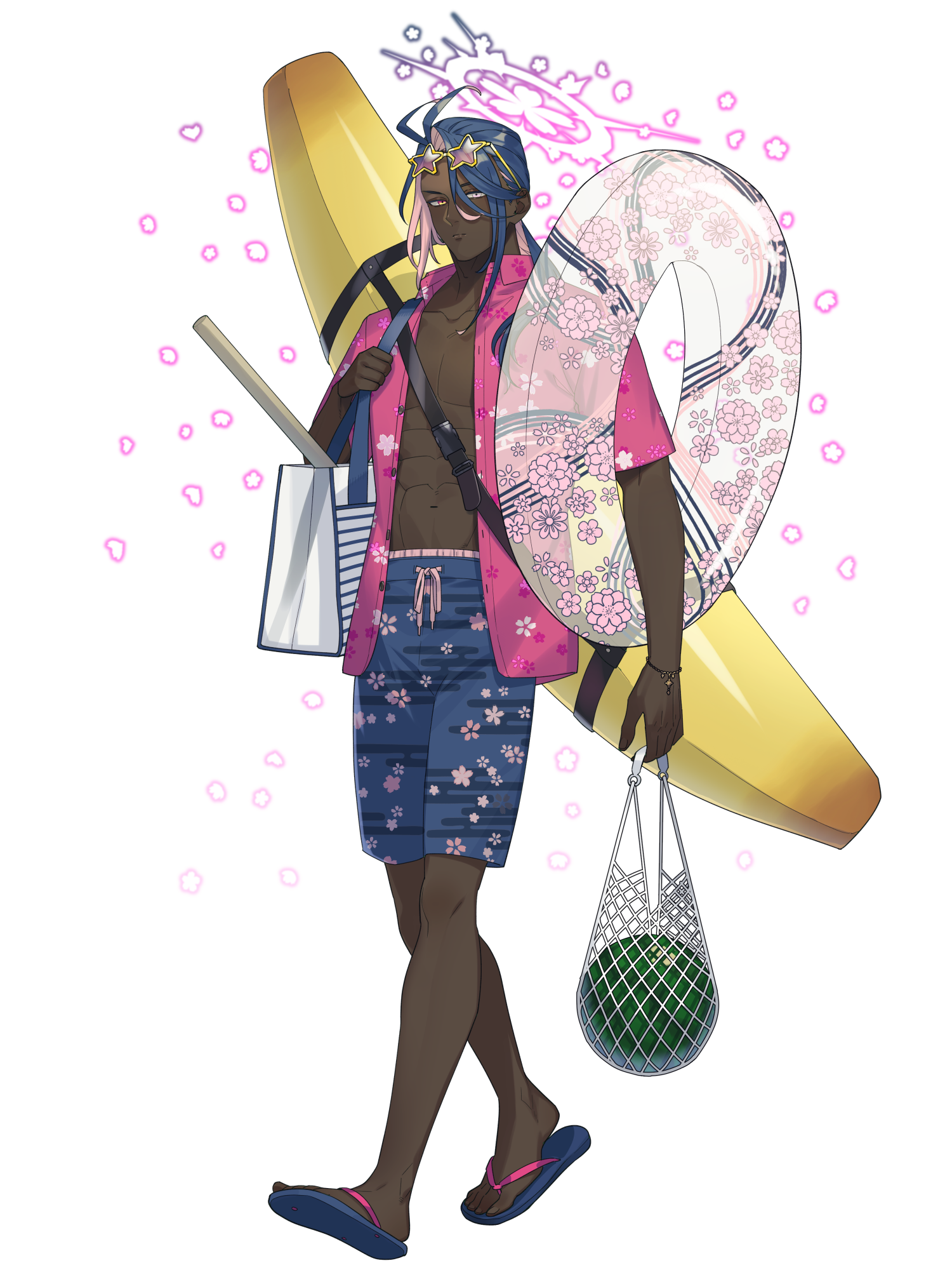 外見: 金の瞳、藍色の髪、焦茶色の肌