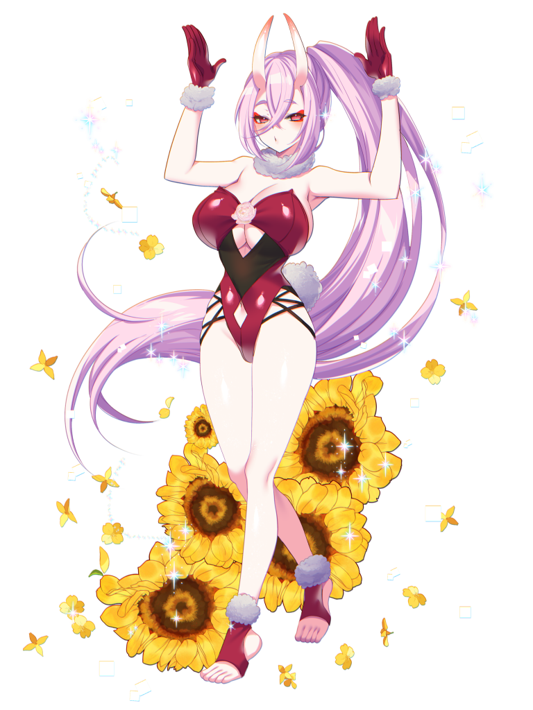 鬼と巫女の血を引いており、桜色の角が特徴。