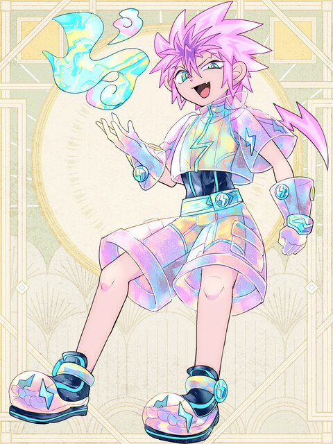 悪の組織にいいように利用されかけてマスクドヒーローから別√から別√へと逃げ回っている態度の悪い少年。彼が特別悪ガキなのではなく、ただ彼のいた空想未来があまりにも荒んでいたのだ。口や態度が悪いだけで心は素直で正義の味方だ。しかし世間を知らずチョロくて騙されやすいので知らず知らずのうちに汚職に手を染めている。