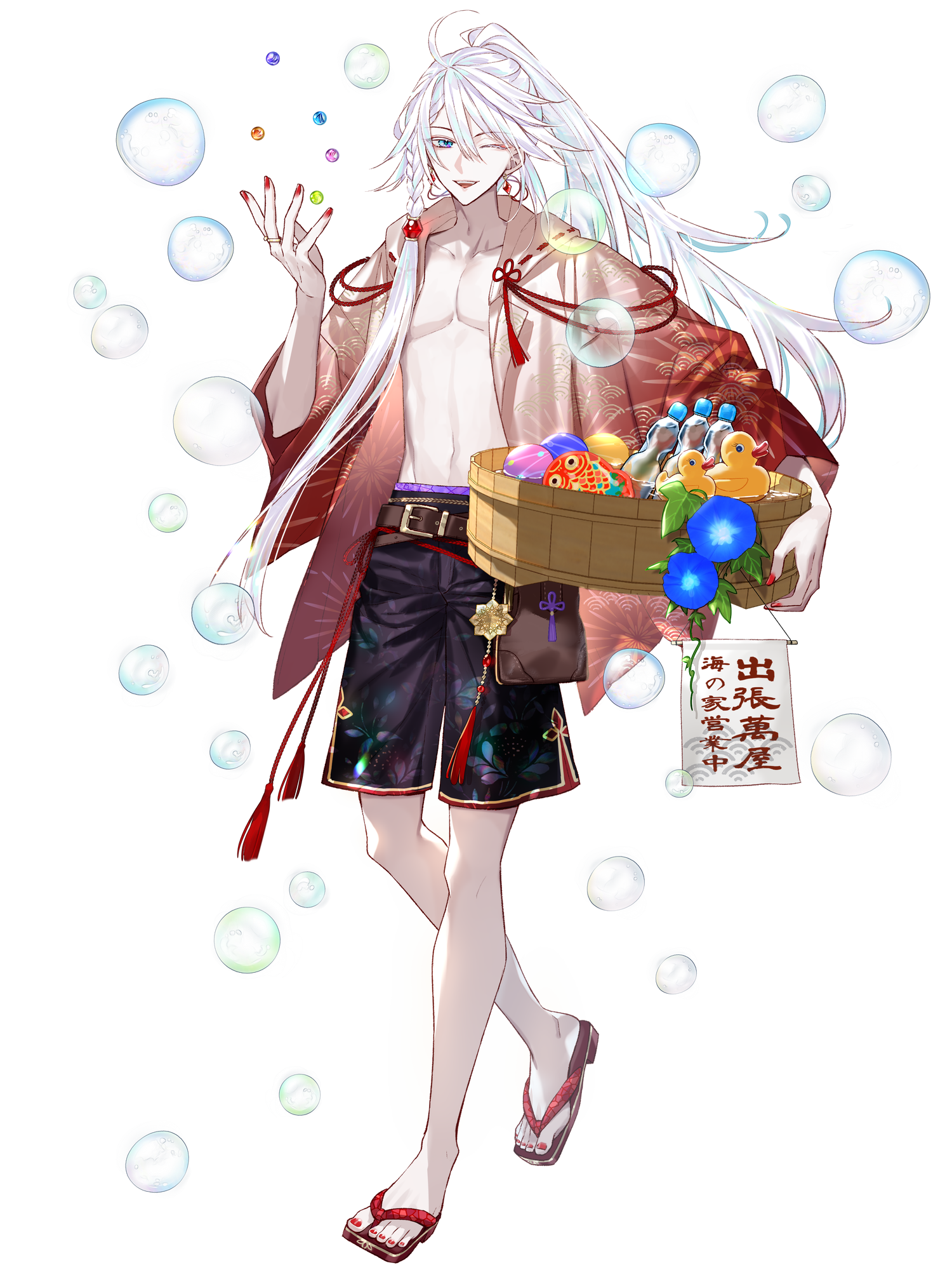 万華鏡から生じた、神の一柱――とはとても思えぬ程、緩く軽くちゃらんぽらんに振舞う優男。へらへらふらふら。キラキラチャラチャラ。くるくるころころ。宛ら万華鏡の如く――気儘すぎて、髪色目色に服飾まで色々と姿形が一定せず、会う度に何かしら変わっている。序でに表情も実によく変わる。黙っていれば何とやらな残念具合。おいそこ顔芸って言うな。そーいうカミサマなのッ!あと厄病神でも貧乏神でも売物でもないっての〜!