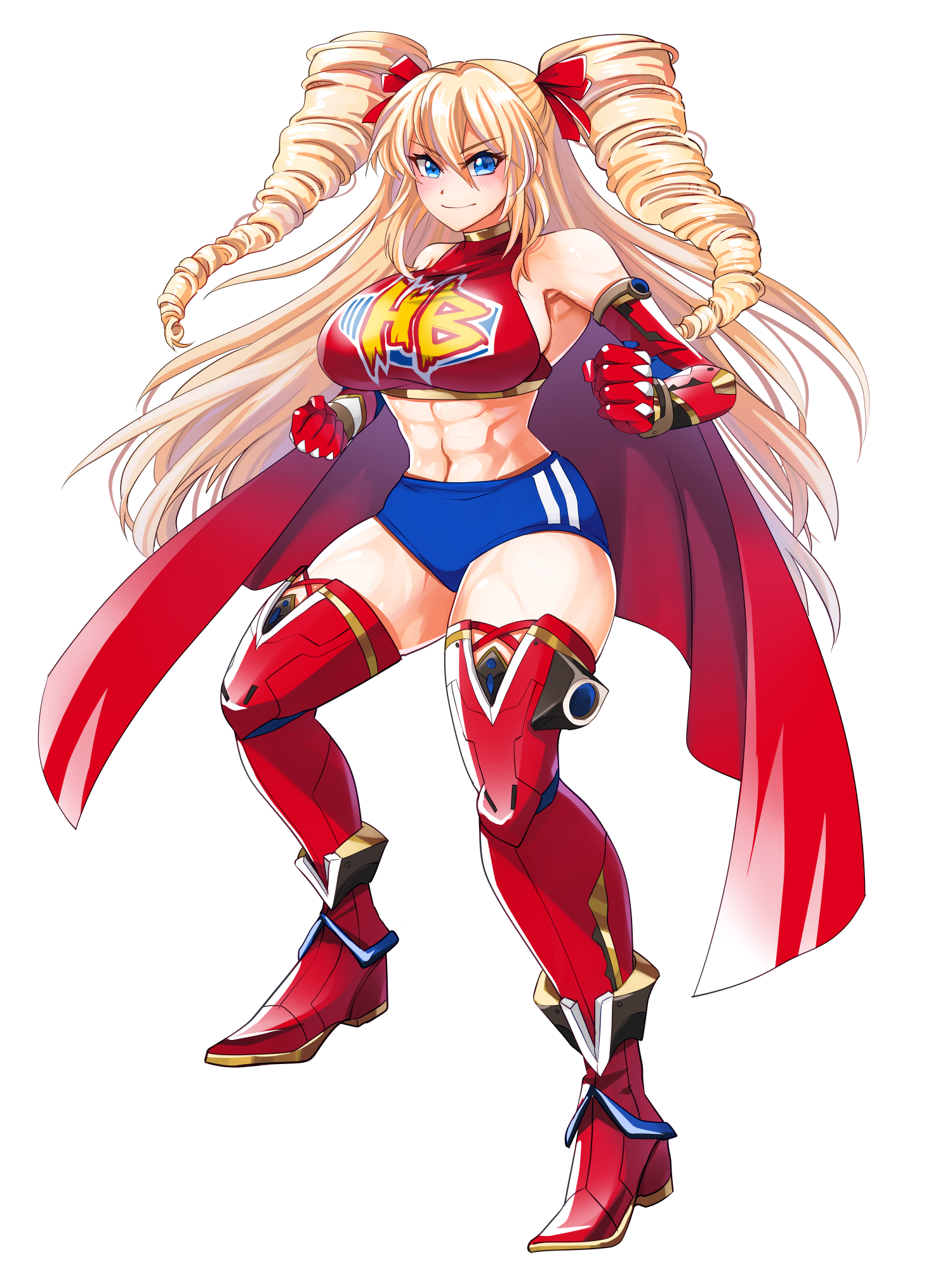 金髪ハーフ縦ロールなお嬢様にして裏で活躍するスーパーヒロイン。家族との記憶が『欠落』している。 ◆普段のドレス姿に嫌気が差してた所で履く機会があったブルマの動きやすさに惚れ、ヒーローコスチュームにするほど気に入っている。ちなみにただのブルマでは無くブルマ型の新型パワードスーツである。技もブルマにちなんだ物が多い。 ◆性格は高飛車お嬢様だがヒーローをやるだけあって正義感が強い。