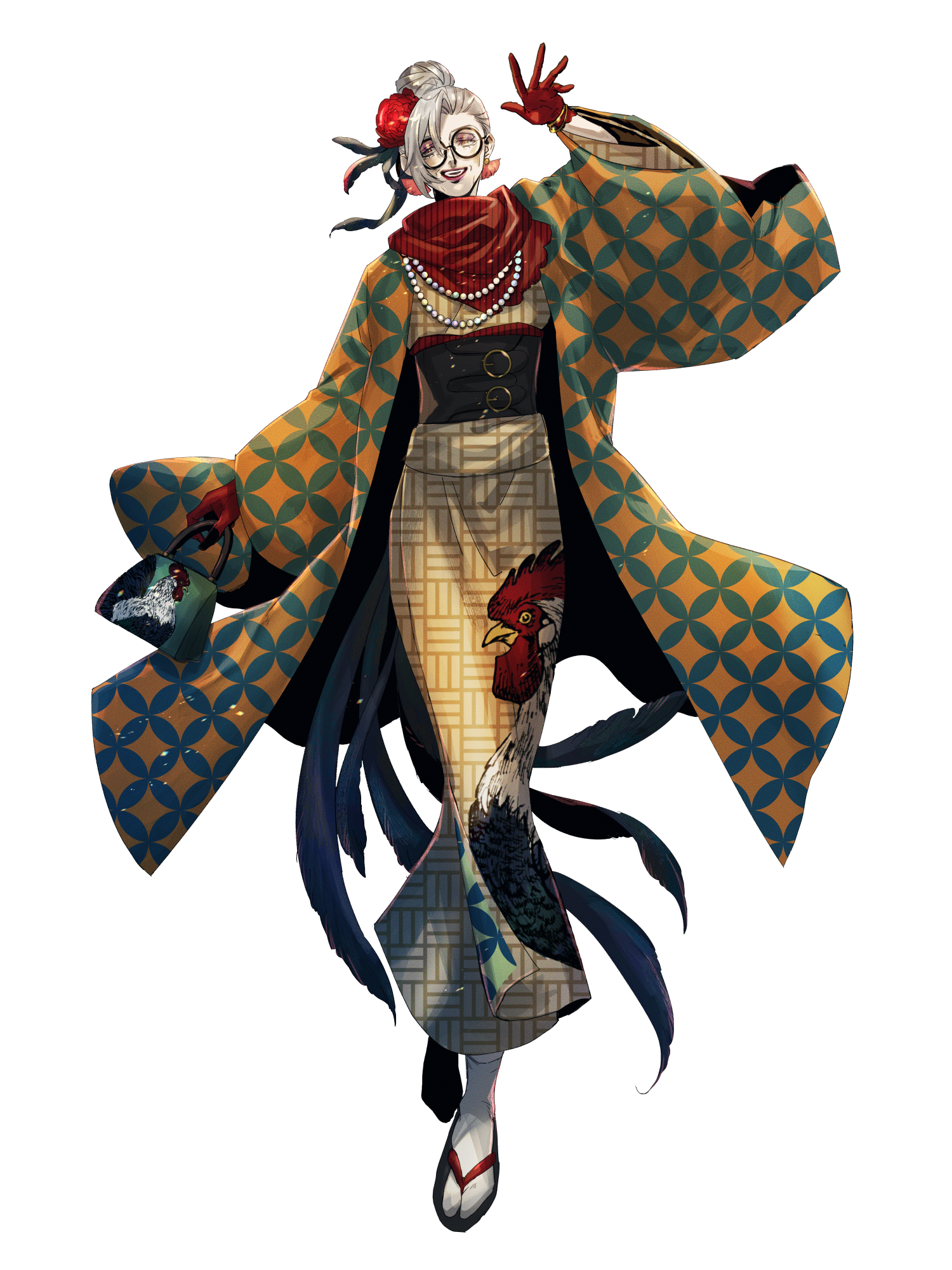 特徴: 眼光鋭い、上流階級の服装、友好的、話好き、実は人がいい