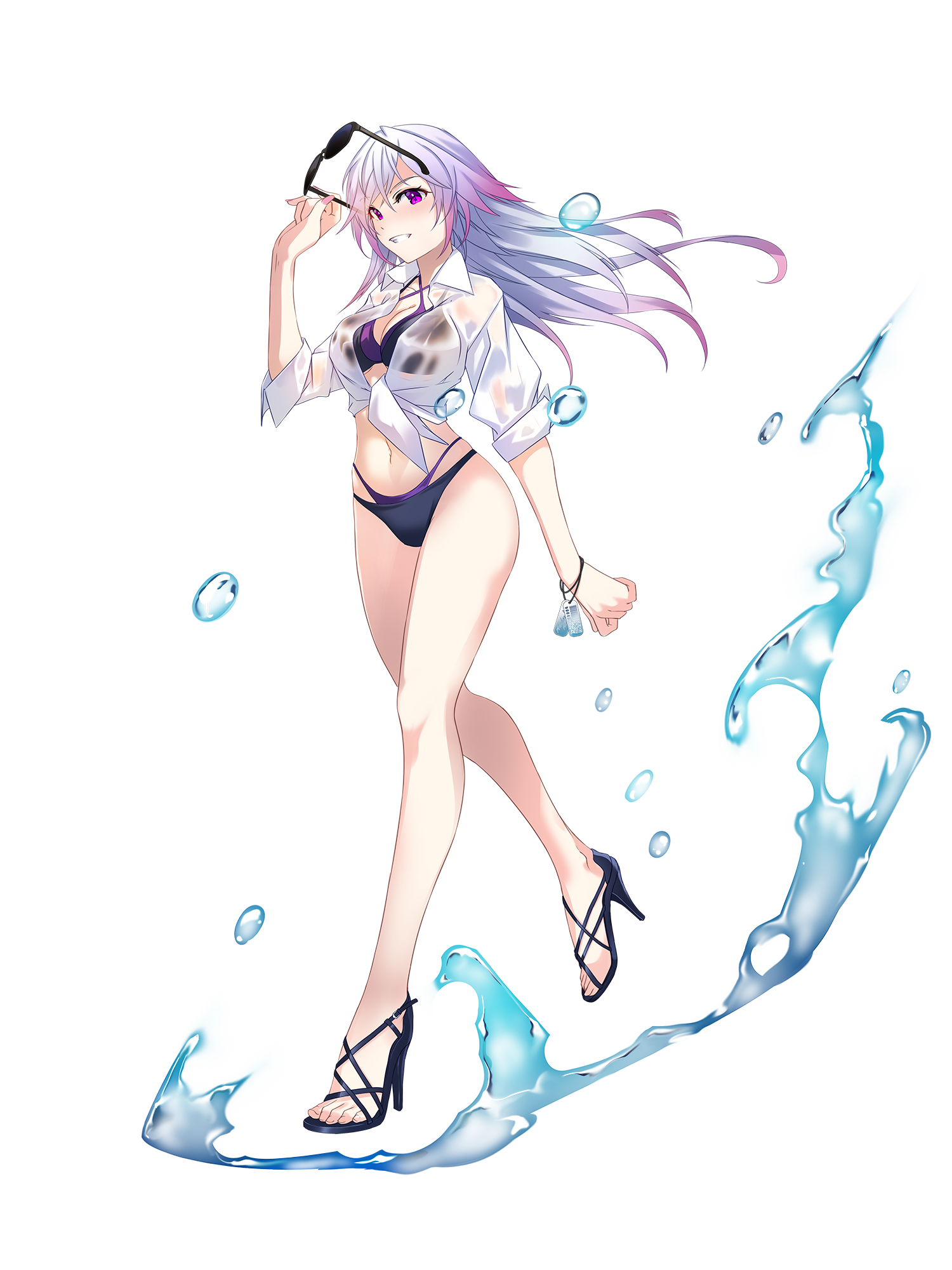 外見: 紫の瞳、銀髪、色白の肌