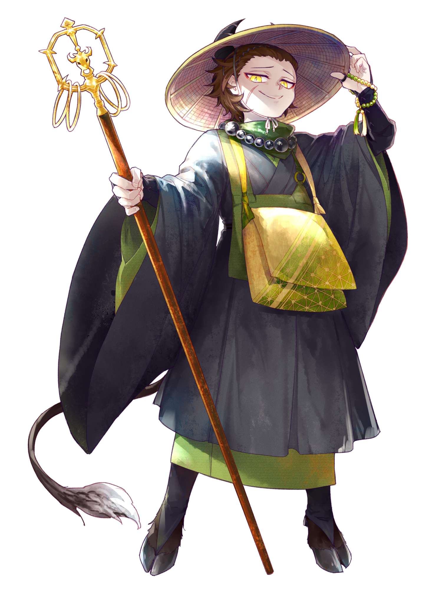 矮躯に宿すは嵐の情念。野牛の角に、背に蜘蛛脚を隠した水妖。皮肉冗句と斜に構えながら、目上恩人異性には礼節を尽くす。◾︎ かつての悪童。恩師に放り込まれた山寺にて、四期生九番として青春を過ごした。現在は委細に口を閉ざし、|要人《Anker》の店にて無為に過ごす日々。 お暇ですか? 冬の雨は寒いでしょう。雨宿りしていかれますか。 ◆ 158cm