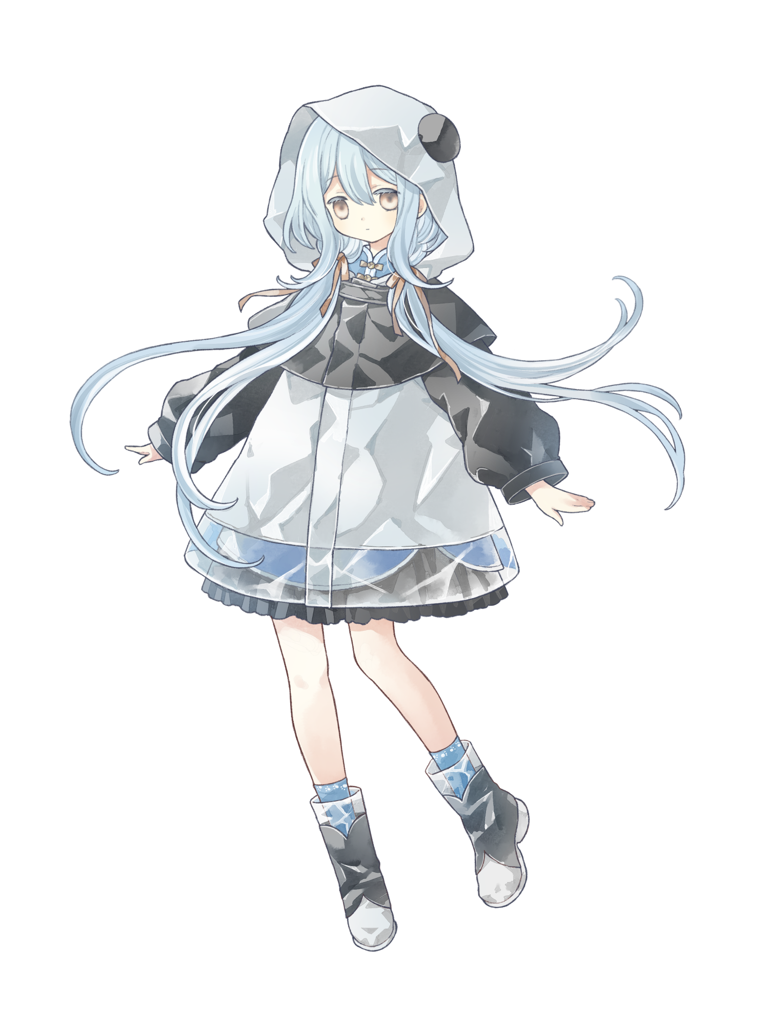 外見: 茶色の瞳、青髪、色白の肌