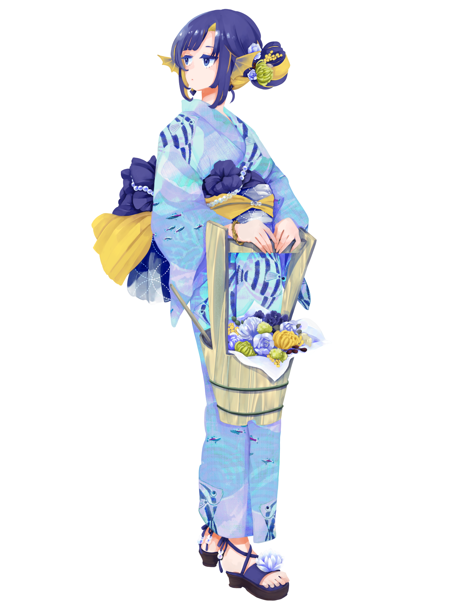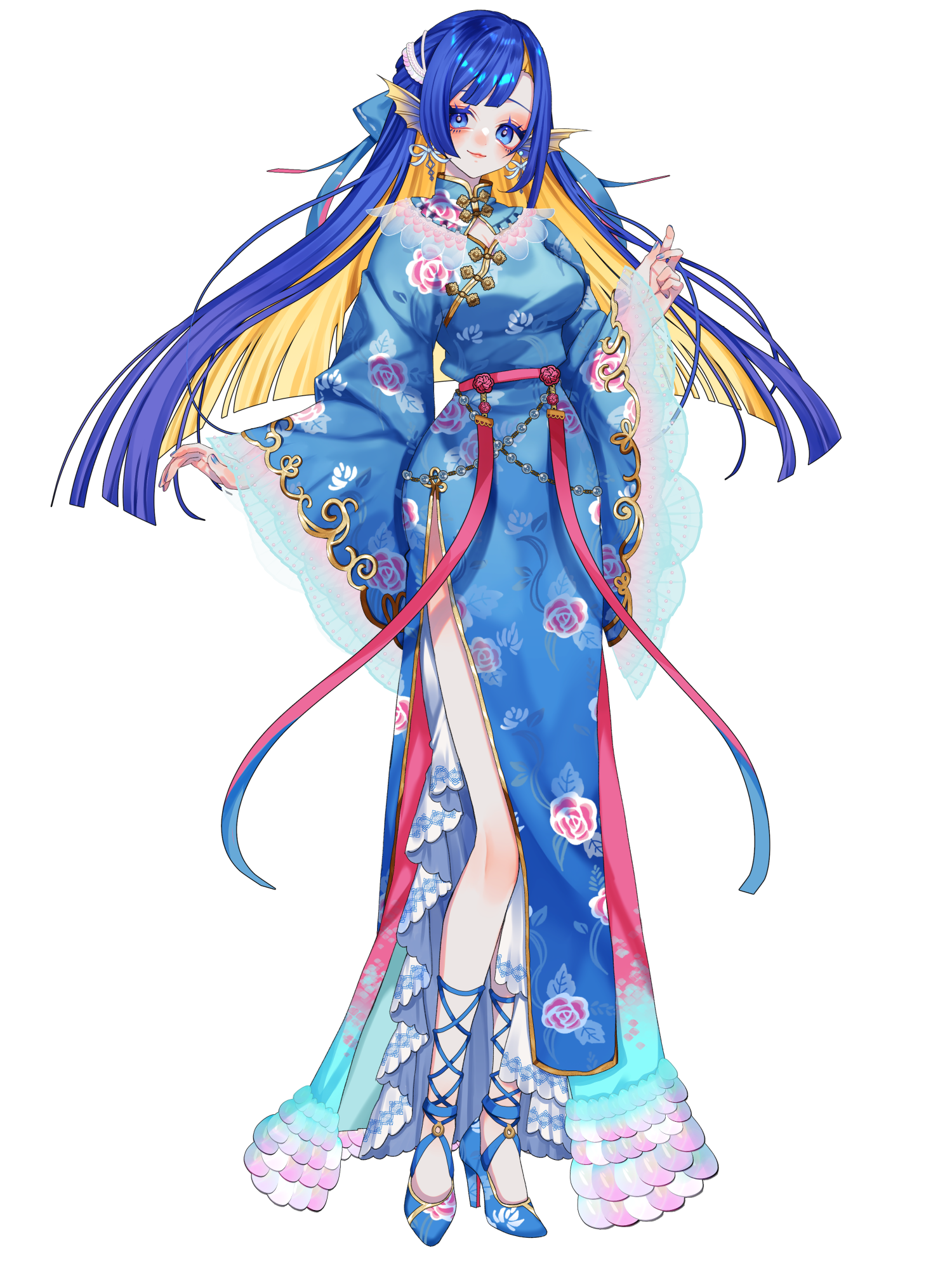 外見: 藍色の瞳、藍色の髪、普通の肌