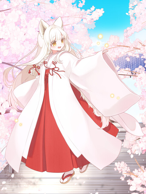☀雪のように真白な髪と、金色の瞳を持つ少女 ☀神狼を祖に持つ人妖の血筋。オオカミは狼にして大神。まだ未熟だけど、その血に恥じぬよう頑張りたいと想っている ☀性格は明るく素直な頑張り屋。常にメモ帳を持ち歩き、日々学び成長しようと一生懸命。感情を擬音で表現するのが癖 ☀護霊を「|灯《あっ》ちゃん」と呼び、姉のように慕っている。灯ちゃん大好きっ! ☀Ankerは母の形見となる千早衣装。とてもとても大切な宝物