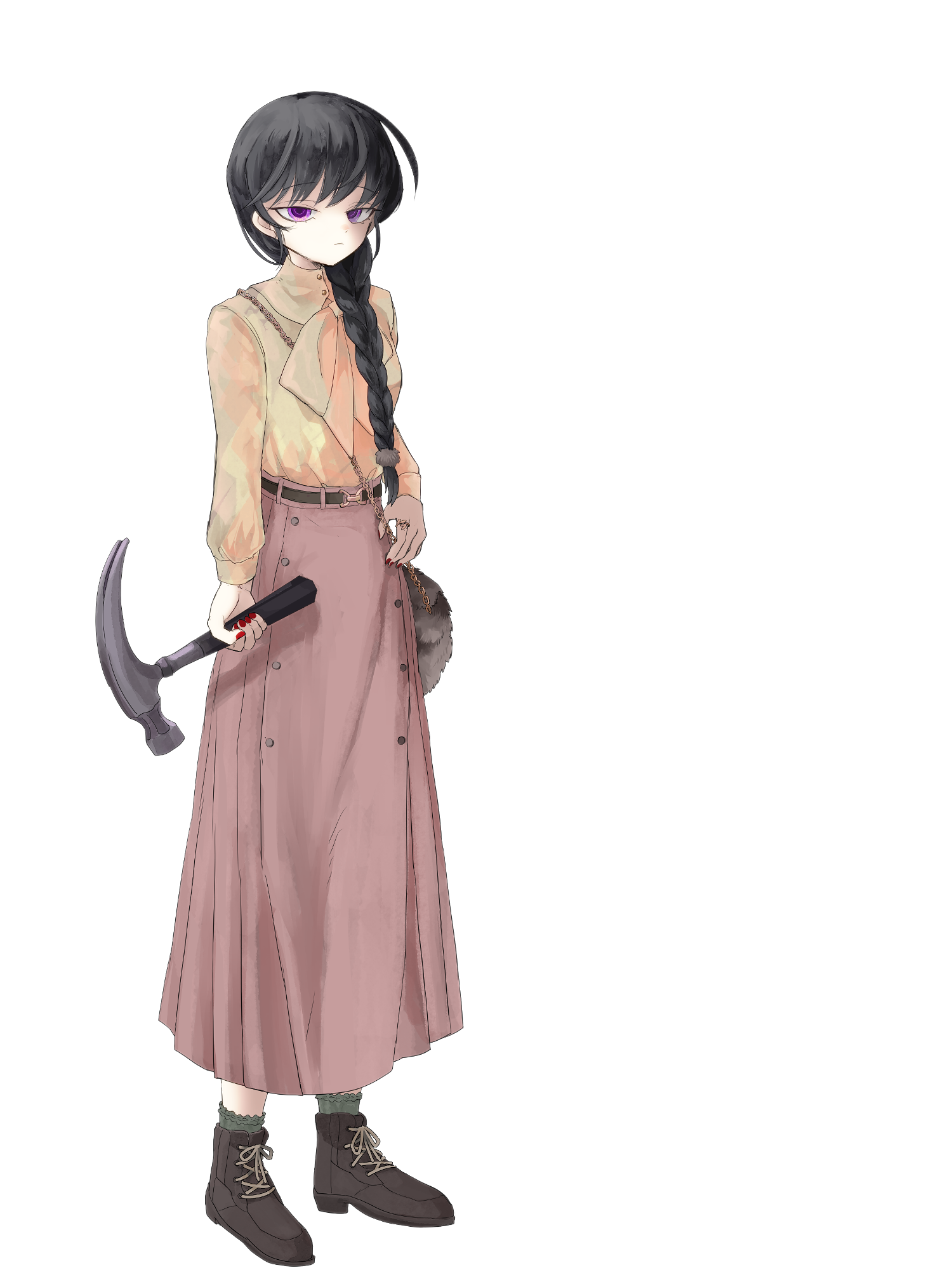 外見: 紫の瞳、黒髪、色白の肌
