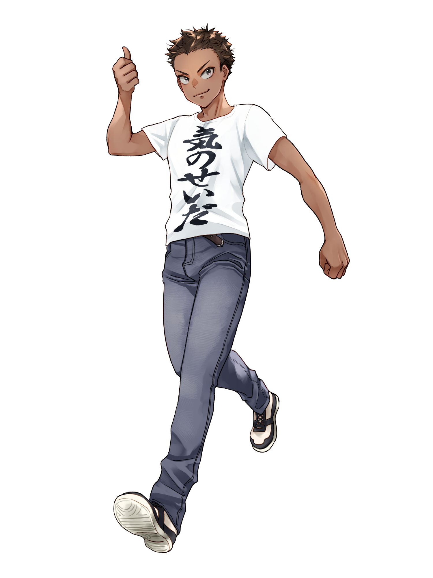 特徴: ワイルドな顔立ち、逆立った髪、お笑いが好き、人がいい、実は熱血