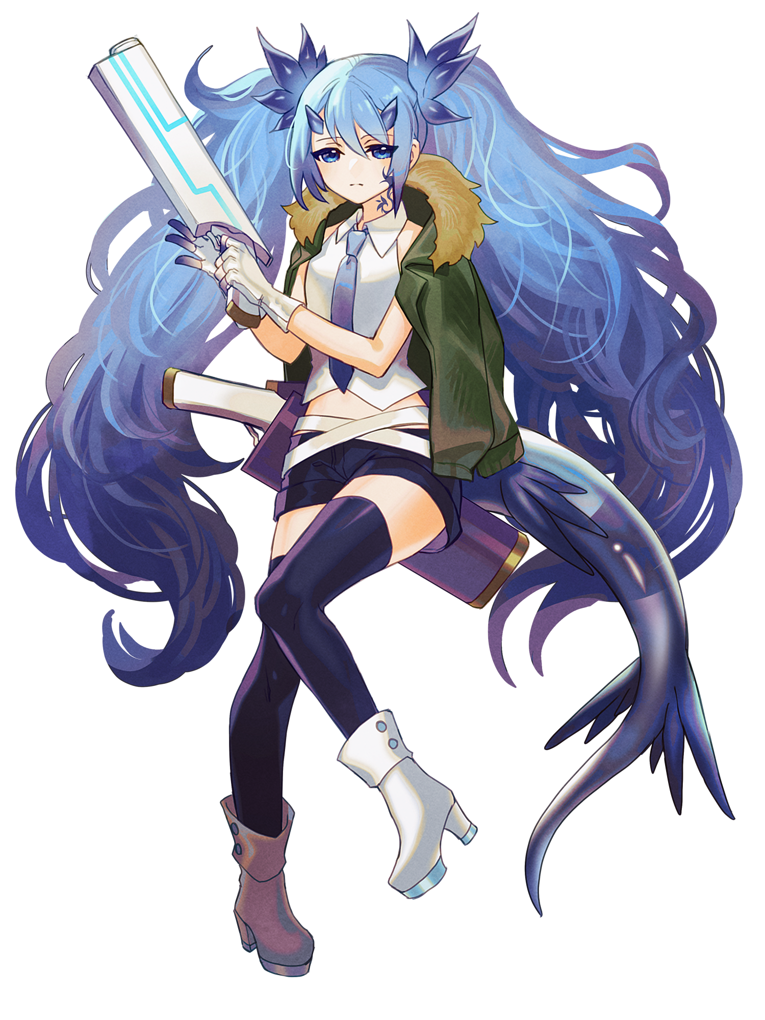 外見: 青い瞳、青髪、白い肌