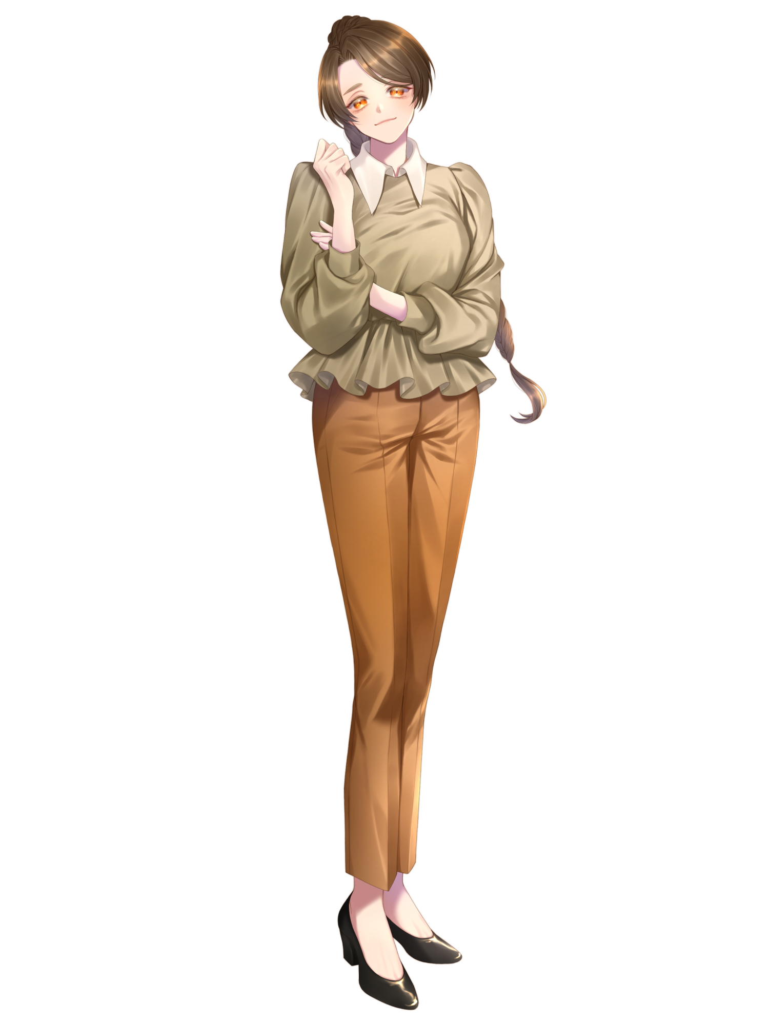 外見: 琥珀色の瞳、茶色の髪、普通の肌