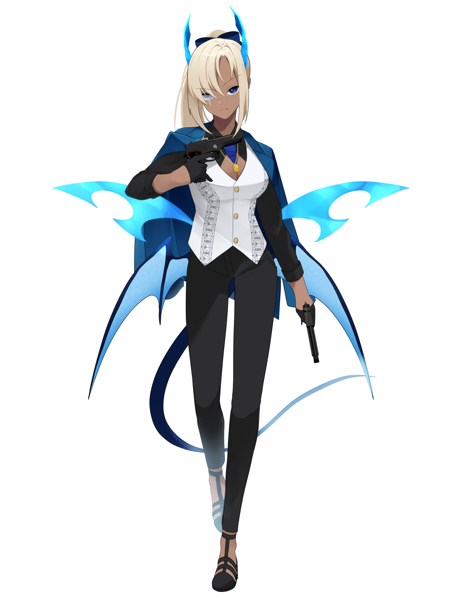 氷雪を纏う美しき龍女。元は劫火の化身たる人間災厄『蒼穹灼く大華』であったが世を焼くことを望まず、隠れ住んでいたところ、氷雪の龍と出会い心を通わせるようになる。龍は女を愛し、女もまた龍を愛したがゆえに龍は禁術を用いて己と女の命を取り換えるに至る。そうして焔は氷雪へと生まれ変わり、龍は焔へと変じた。/以降、与えられたものを忘れぬようにと愛した龍の名を掲げ、彼の用いた氷雷の銃を手にしている
