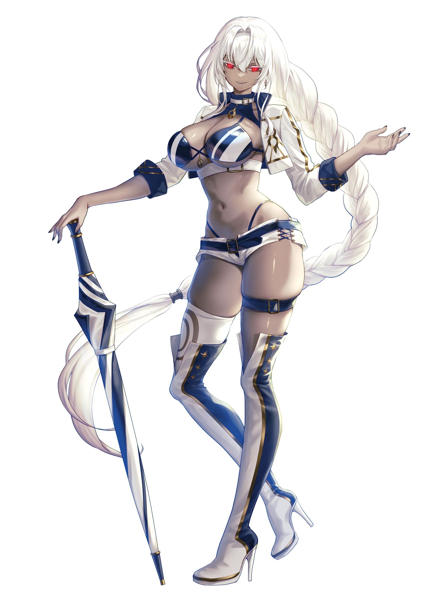 外見: 白い髪、色黒の肌