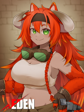 ◆|錬金騎士《アルケミストフェンサー》にして戦線工兵。◆複数の動物の特徴を持つ希少な複合獣人。普段は側頭部の牛角と犬耳尻尾が主な特徴と言えるが、何種類の複合かは本人のみぞ知る。◆鍛冶屋を営んでおり、卓越した鍛冶技術と錬金術を駆使した製品は非常に高品質で人気がある。◆外見に見合わぬ怪力で様々な武器を使いこなし、錬金術まで扱う戦闘スタイルは多芸の一言。低身長と童顔のせいで年相応に見られないのが悩み。