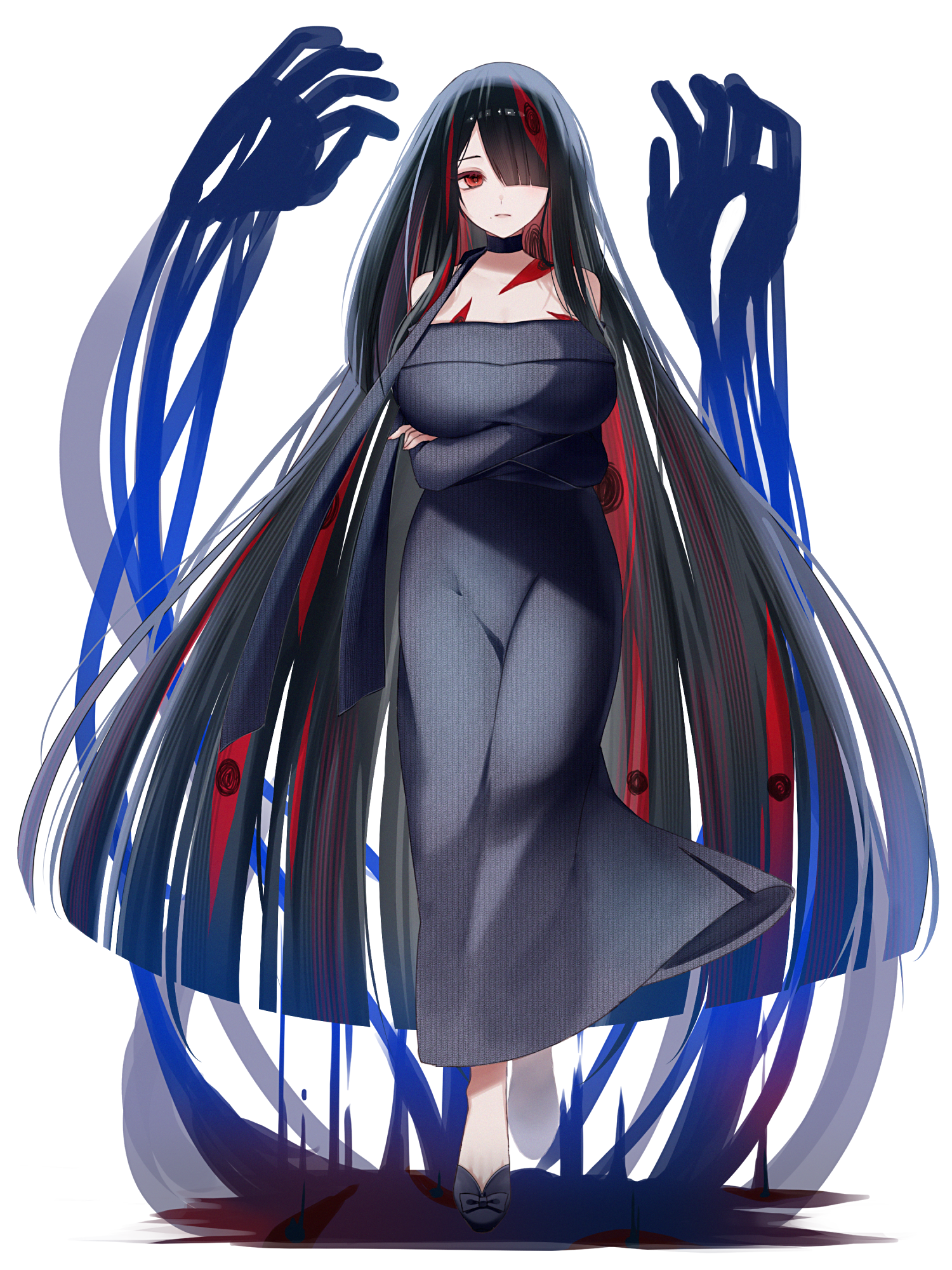 外見: 赤い瞳、黒髪、色白の肌
