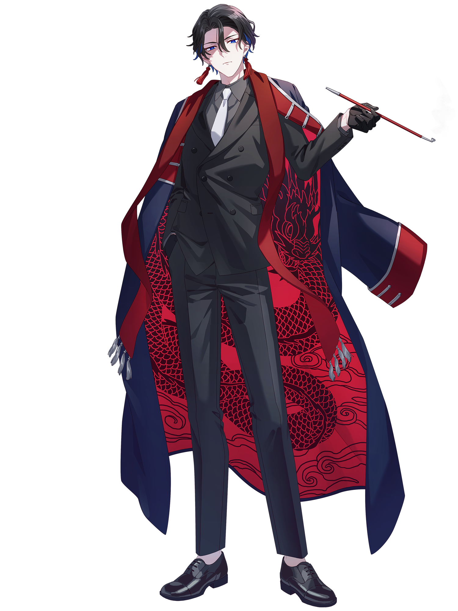 外見: 藍色の瞳、黒髪、色白の肌
