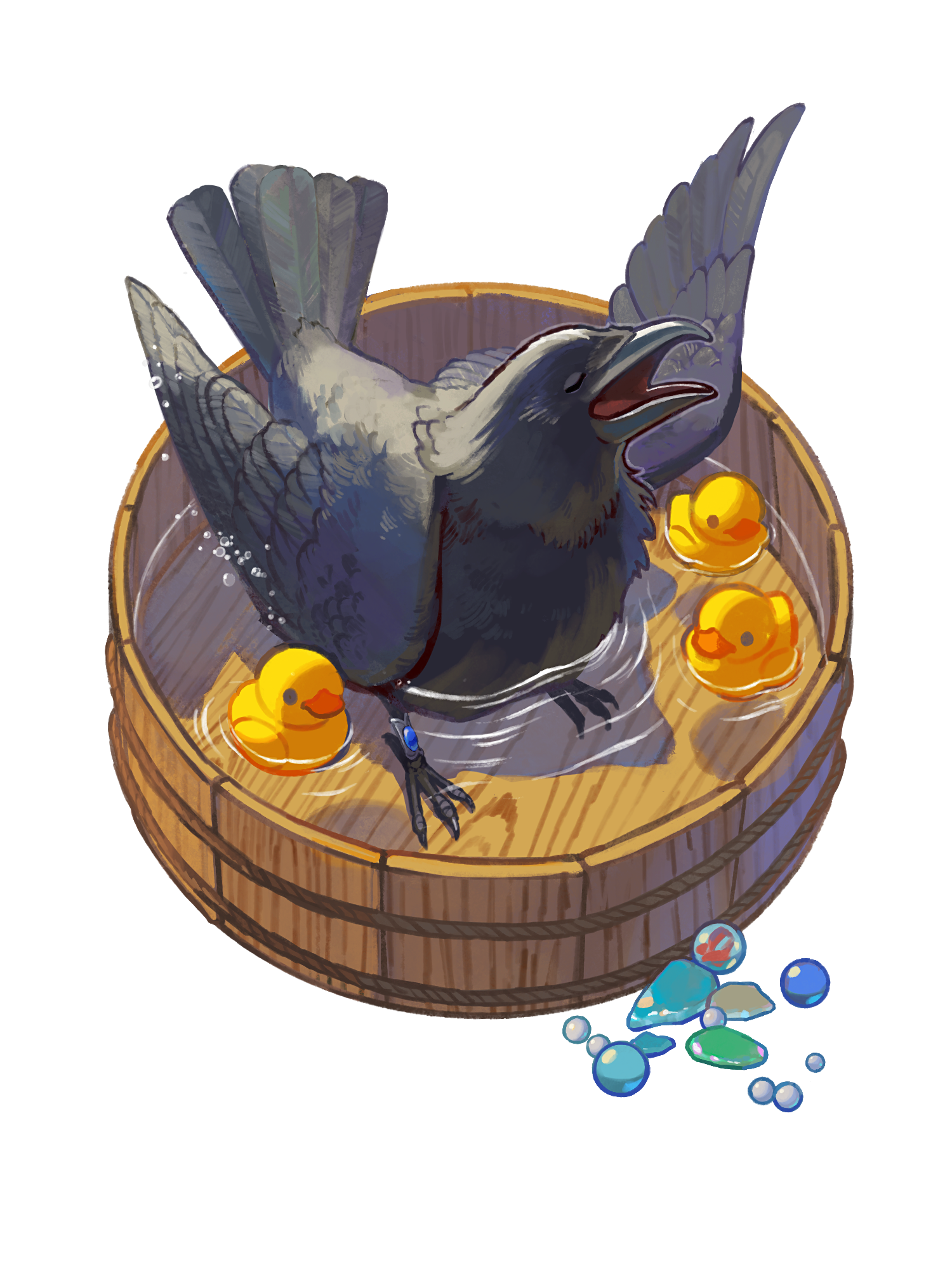 どこにでもいる唯の鴉――を装いながら、密かに人里を巡り遊ぶ|風来坊《風太郎》。齢は最早数えるのを止め幾星霜、物怪に片足突っ込んだ|狸《鴉》爺。彼方此方に鳥座という名の露店を作り、光物を集めては飽きて売って、全ては気任せ風任せ。最近は良い|珍品《玩具》を見つけたか、恩返しと称し何処ぞの萬屋にも出入中。中身は遊び心に戯れ心、そして出来心で出来ている剽軽者。