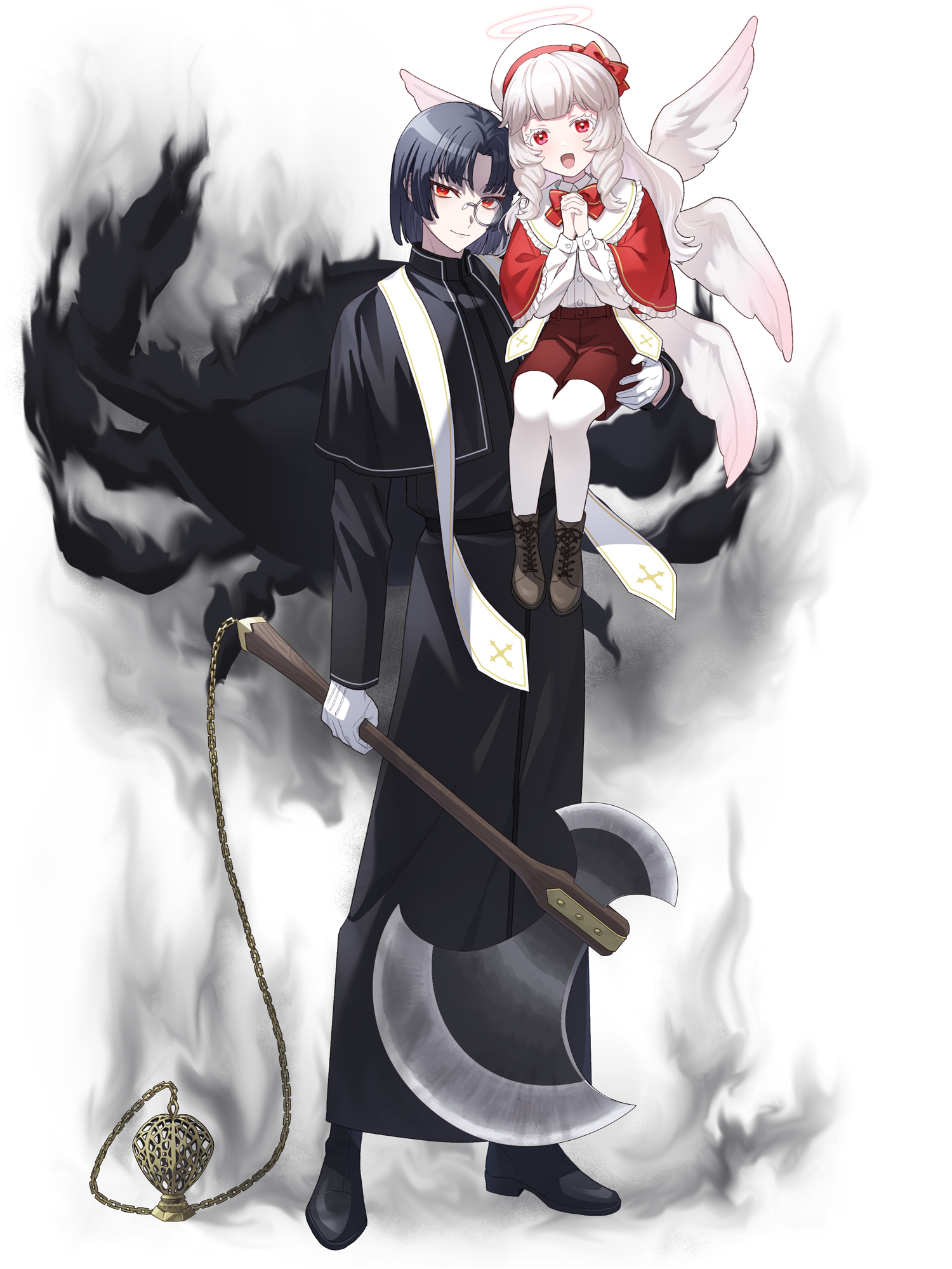 外見: 赤い瞳、藍色の髪、色白の肌