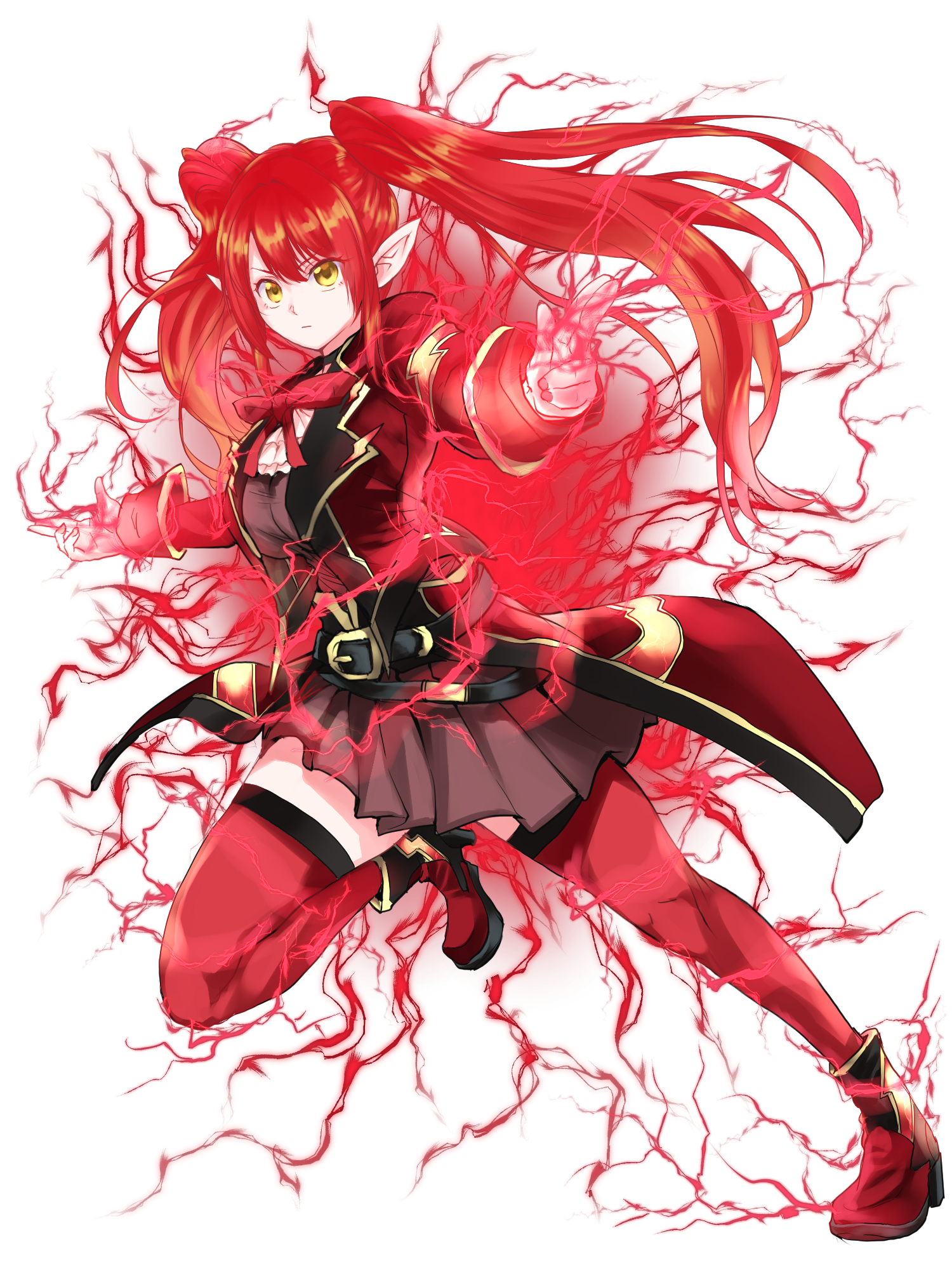 ヴォルフガング・ローゼンクロイツと契約を交わし使い魔となった赤雷の精霊。本人は強気なのだが、実は他の雷の精霊達と比べると出力が弱く内心劣等感を抱いていた。しかし、ヴォルフガングからすると出力が弱い事は必ずしも劣る事を意味する訳ではなく、安定性が高く扱いやすく、錬金術にとっては赤色は特別な物であり相乗効果が見込めそうとの事。今まで必要とされなかった事もあり力を貸す事を決めた。