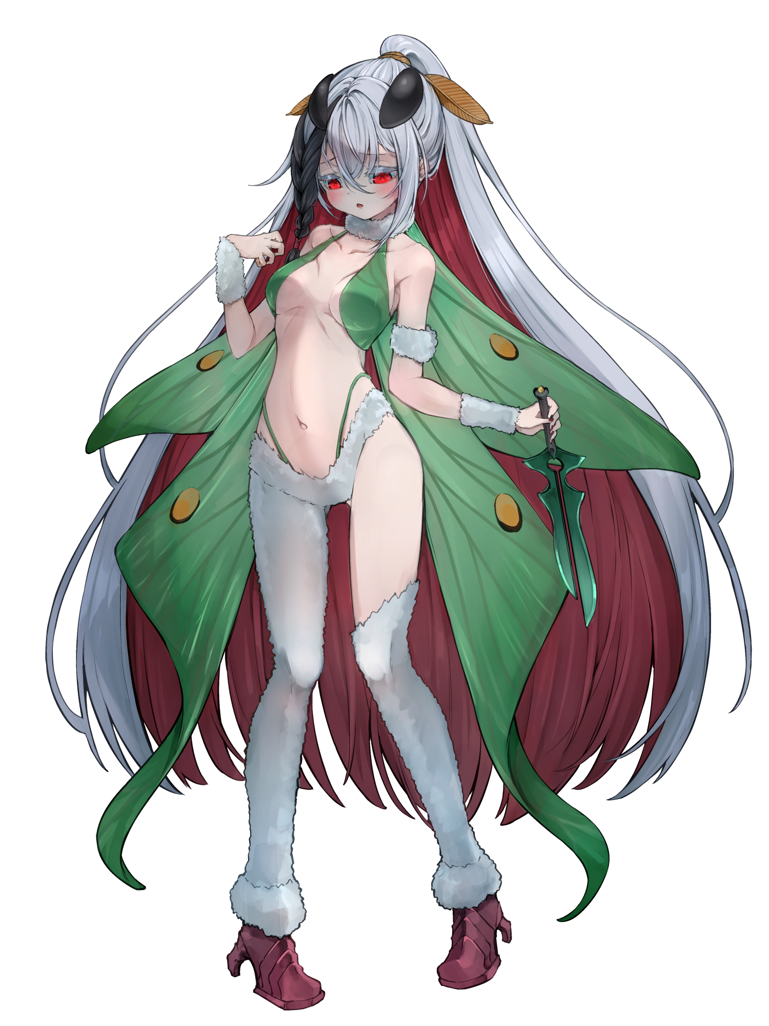 外見: 赤い瞳、白い髪、色白の肌