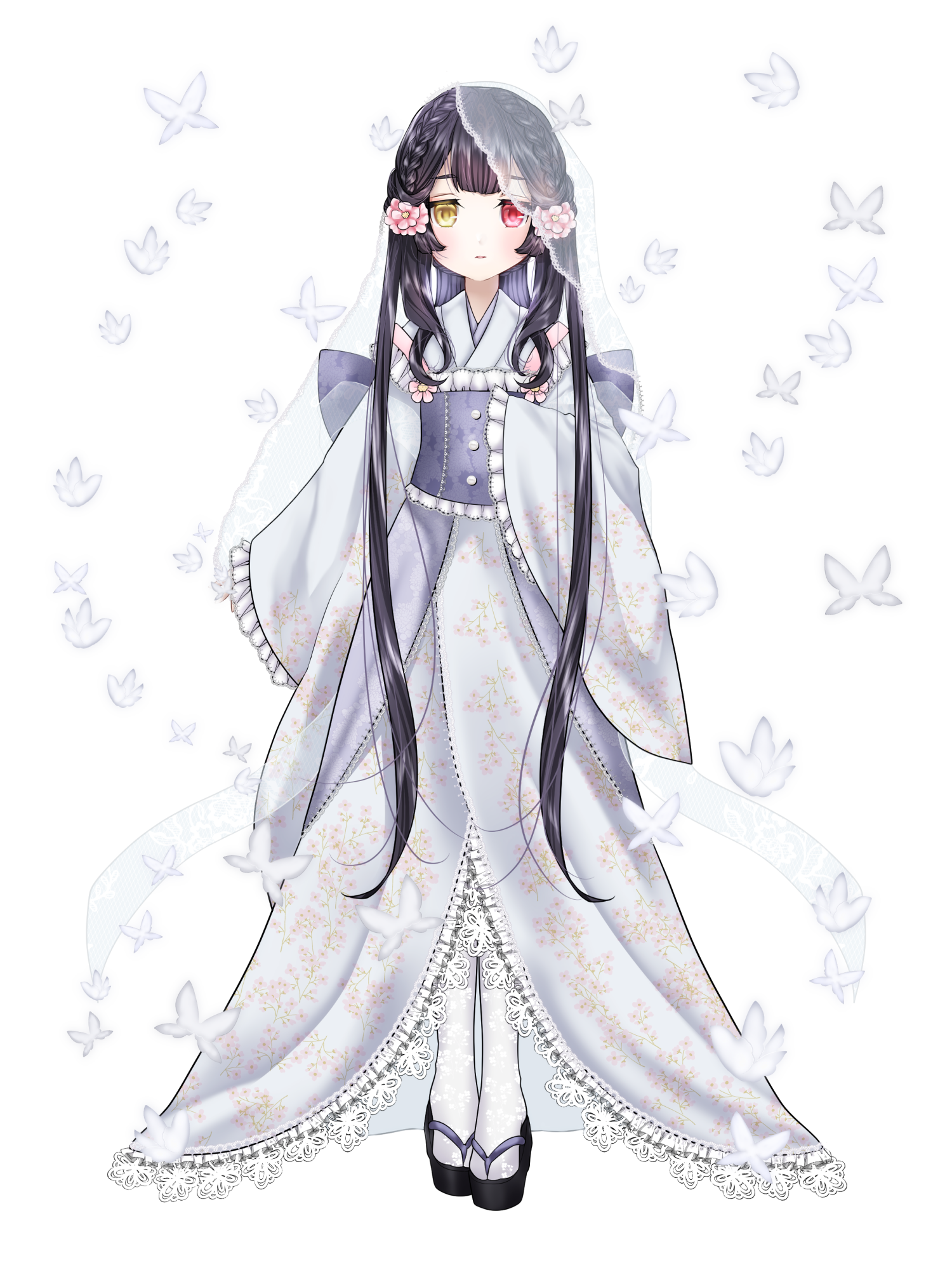 コトリバコの付喪神。手足を始め体を構成する幼い魂たちは、蝶の形にして出した状態で任意に動かすことも可能。行き場がない子達なので、ほっといても体に帰ってきます。小鳥は、幼い子供や水子の魂を集めて作られた。厳重に封じられて居たはずが、気付くと闇市に出されていた。物好きな御主人様の血族を根絶やしにしながら毎日を何となく過ごす。本人は、純真。(素材がそうだったから)。容姿は、幼く可愛い、若い女性です。