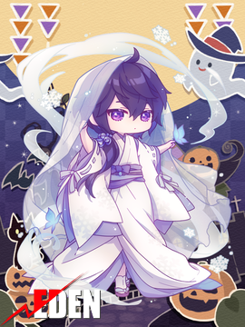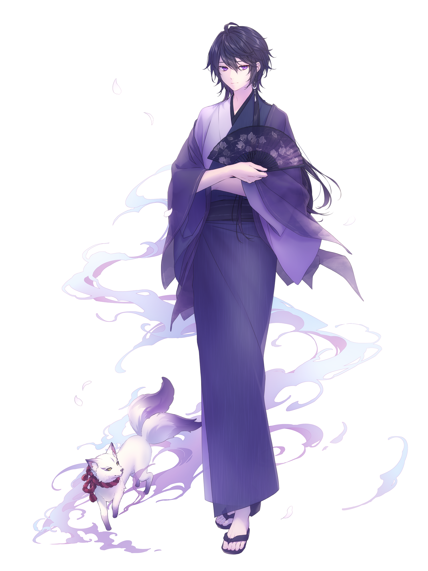 幾百星霜、数えた歳月も霞むほど。生来の名を忘れ、歪んだ時間軸と虚しき雪夢を繰返す亡霊。愛しき者へ遺した悔恨と執着のみで魂を現世に繋いでいる。生者に認識される事無く、彼の通った路に残るのは僅かな冷気と鈴音のみ。// 基本感情が凪いでおり冷静。笑う事を躊躇う。存命時、未熟さから数多の人間を傷つけた後悔により単独行動と寡黙さが目立つ。元は呪術信仰一族の神子出身。霊力・神力・呪力を併用し、言霊に長ける。