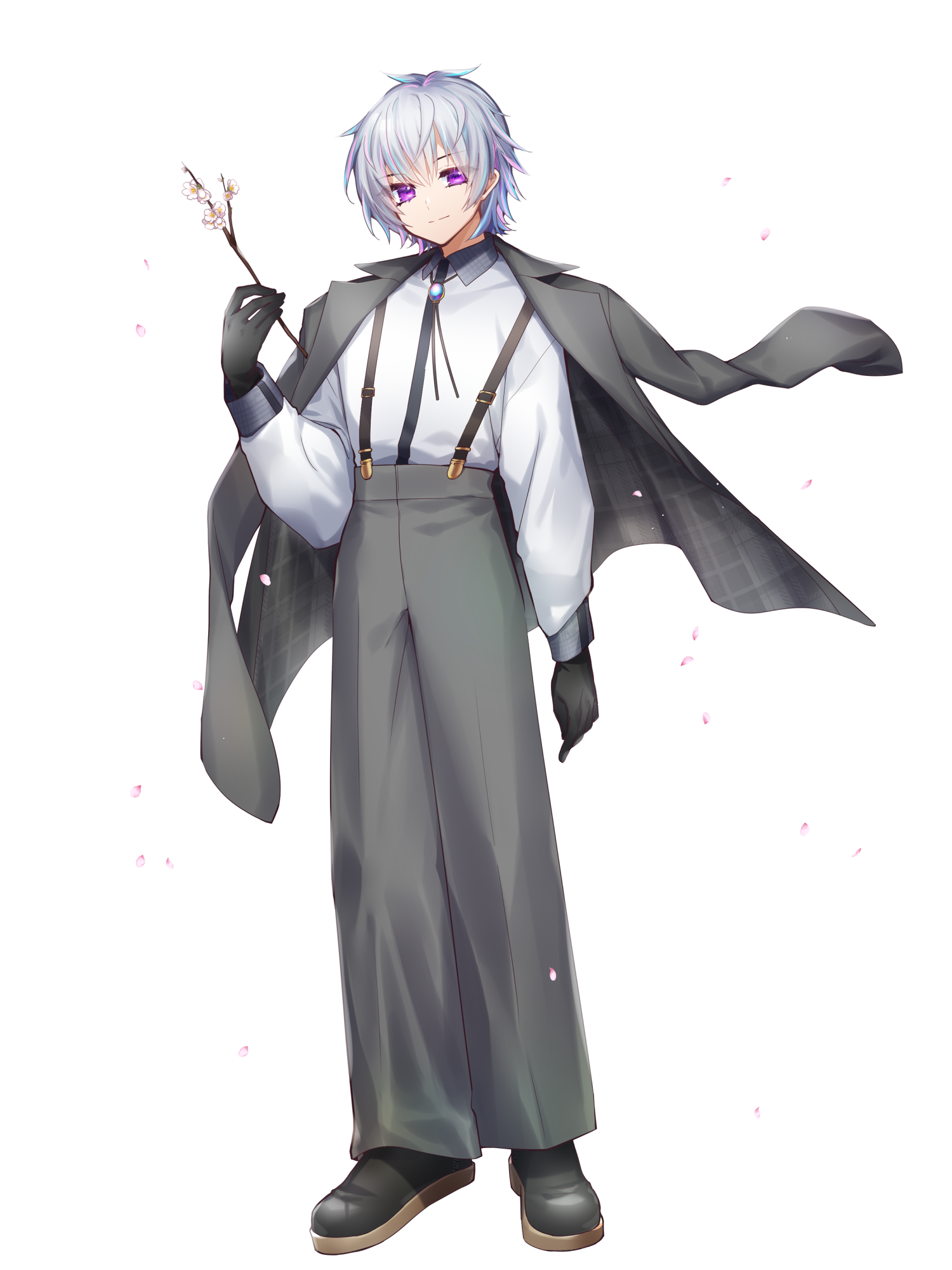 外見: 紫の瞳、灰色の髪、色白の肌