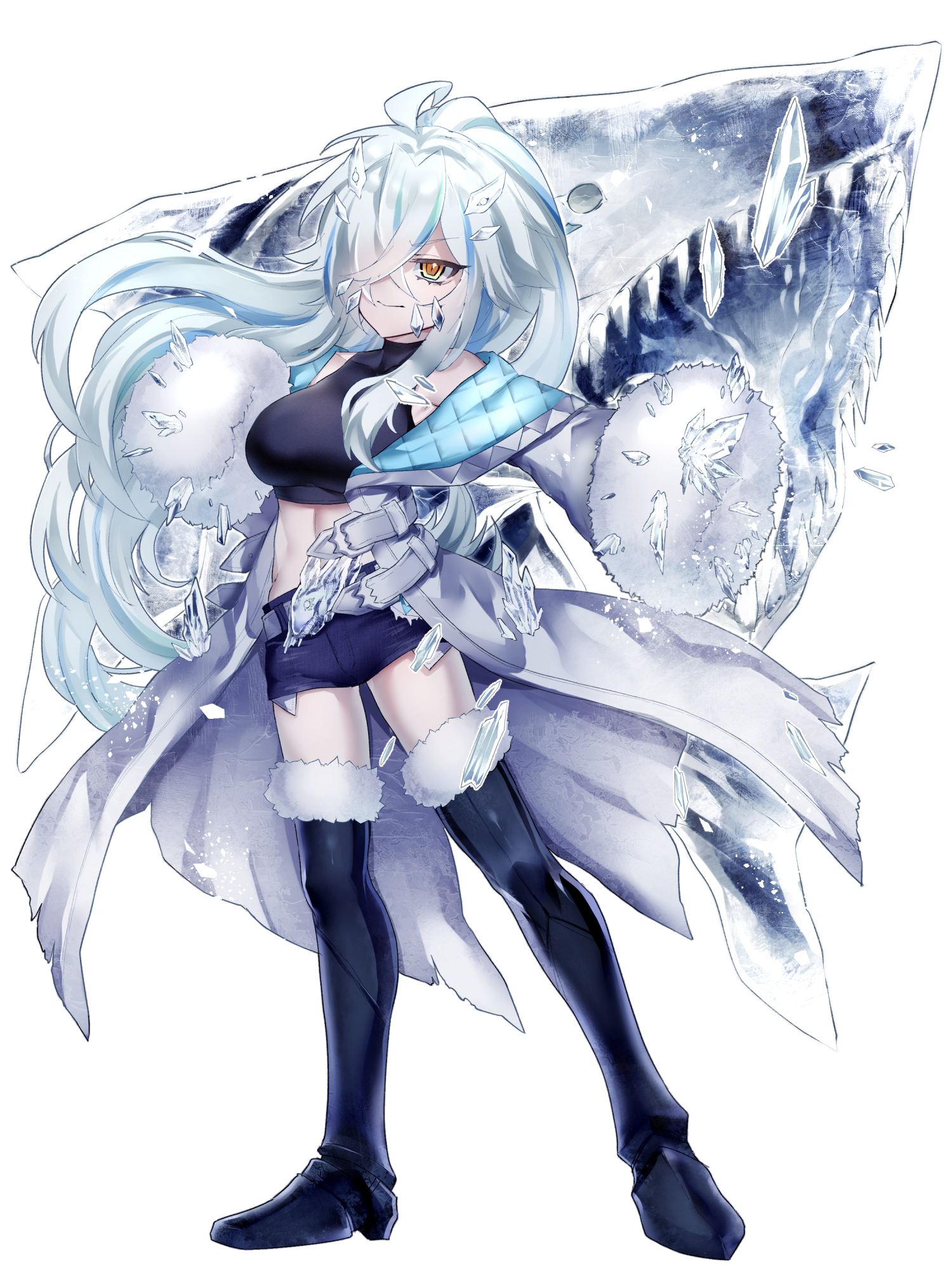 外見: 琥珀色の瞳、白い髪、色白の肌