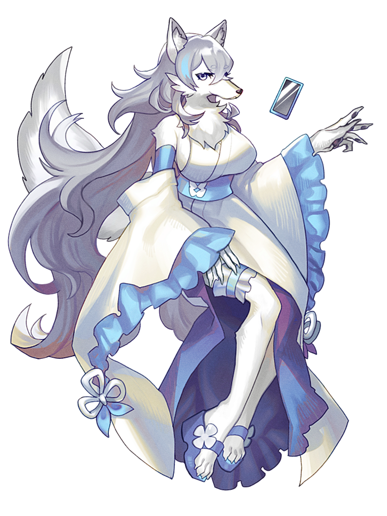 見た目は幼いホッキョクオオカミ獣人だが、その正体は獣妖「|雪狼女《せつろうおんな》」。住処も、実年齢も、本当の姿も、誰も知らない。 可愛らしいものが大好き。それを術で凍らせ、氷像としてコレクションするのが更に大好き。あんまり倫理観のない妖怪。 (人死にを出す趣味はないので)凍った相手の生命を維持する妖術を編み出すなど、妙に努力家な一面も。◇その魔獣は、本当の愛を知らない。
