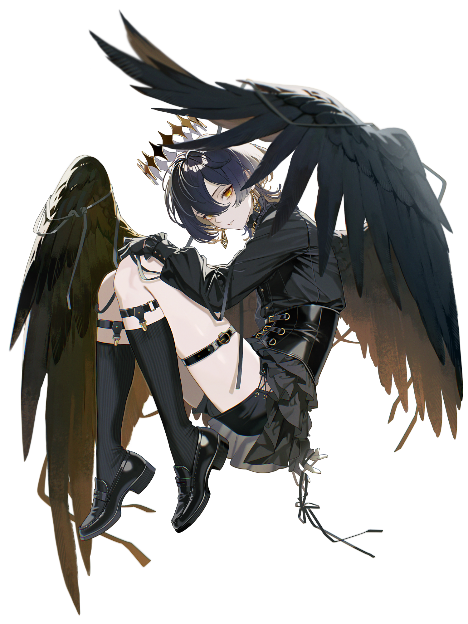 黒翼と金の光輪を持つ天使の成りそこない。「愛すること」のために生きる美少年。口から出るのは嘘か本当か聞こえのいい優しい言葉のみ。世間知らずで特技も無いが愛想と顔だけはいい。長いまつ毛に縁取られた瞳は金に輝き、常に笑みを浮かべる。生まれる前から天使と信仰され|虚栄《見栄》と|愛嬌《笑顔》を身に着けた。命を愛で、世界を愛で、運命を愛でる。——それでもきっと、僕は産まれてくるべきでは無かった