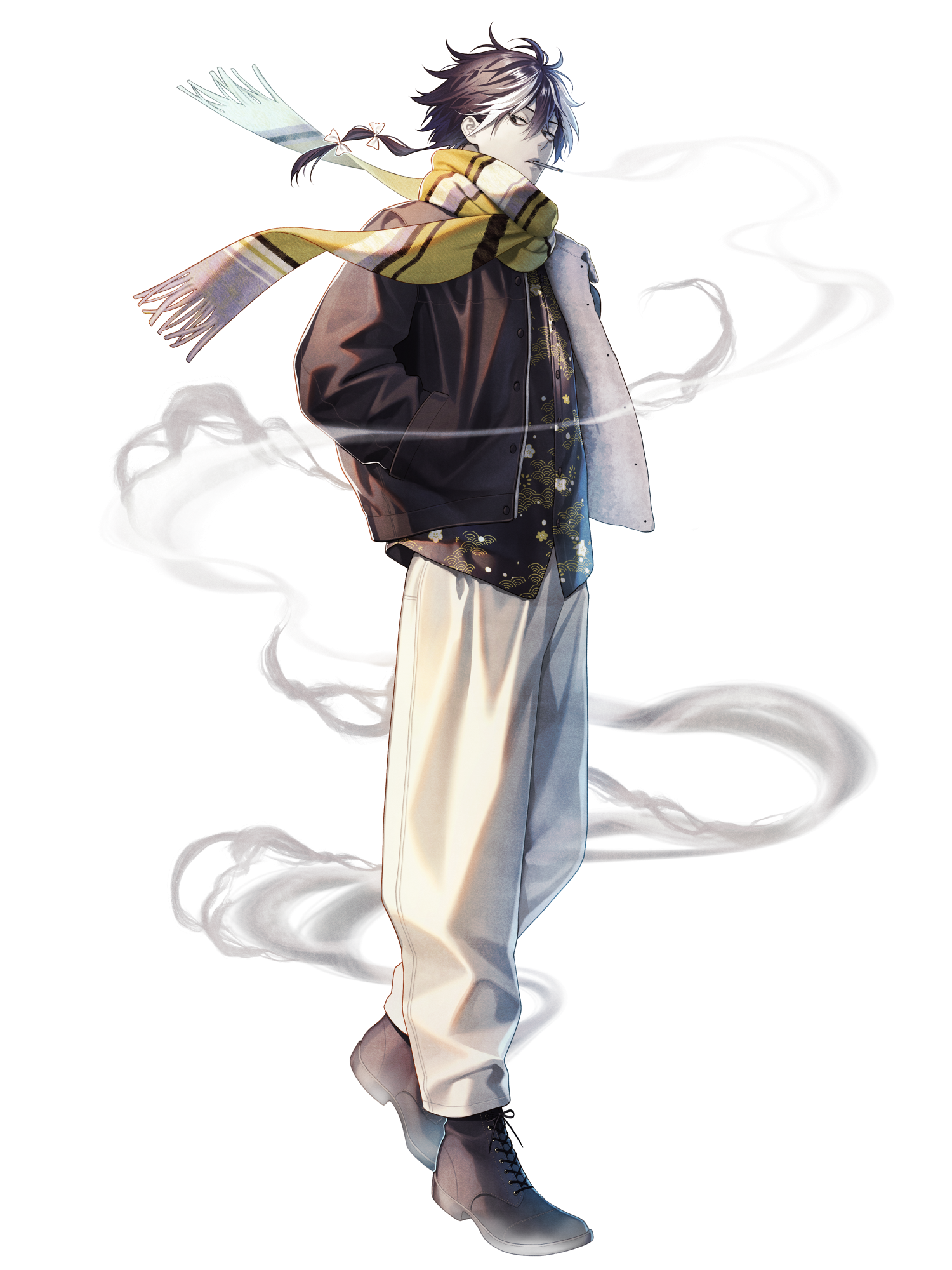 ■名前の通りの夜一番。痩せた身体に不健康な顔立ち。■白と黒とのモノクロフィルムはすっかり褪せた。■白黒幽霊。不思議な店で手伝いをする傍ら|仲間《しびと》と語り合っている。自称記録者。姿容も分からぬ姫君の世話係。■怠惰で掴みどころのない性格。『覚えていない』は都合のいい魔法の言葉。■寝不足。ヤニ命。明るい所が苦手。