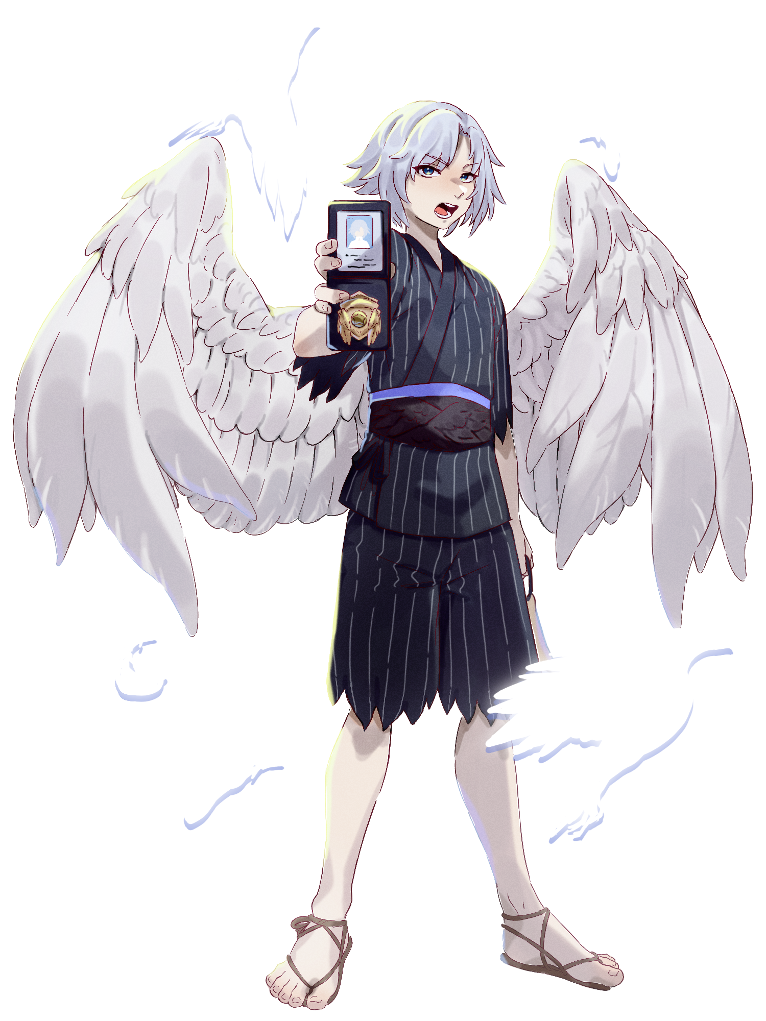 人間災厄『渡り鳥』にして、|警視庁異能捜査官《カミガリ》に特殊な扱いで所属している観察対象。災厄として成立してから有翼の翼を持つが、翼自体が災厄の根源でも在る。光の屈折で色を変える事も可能。災厄能力でわりと一箇所に留まることが出来ない渡り鳥。自身が常に渡り鳥状態であり周囲を放浪状態にさせる災厄。「群れの豹」を意味する家名を持ちながら、その鳥は殆どの場合孤独である。口元を嘴のような口面で隠している。