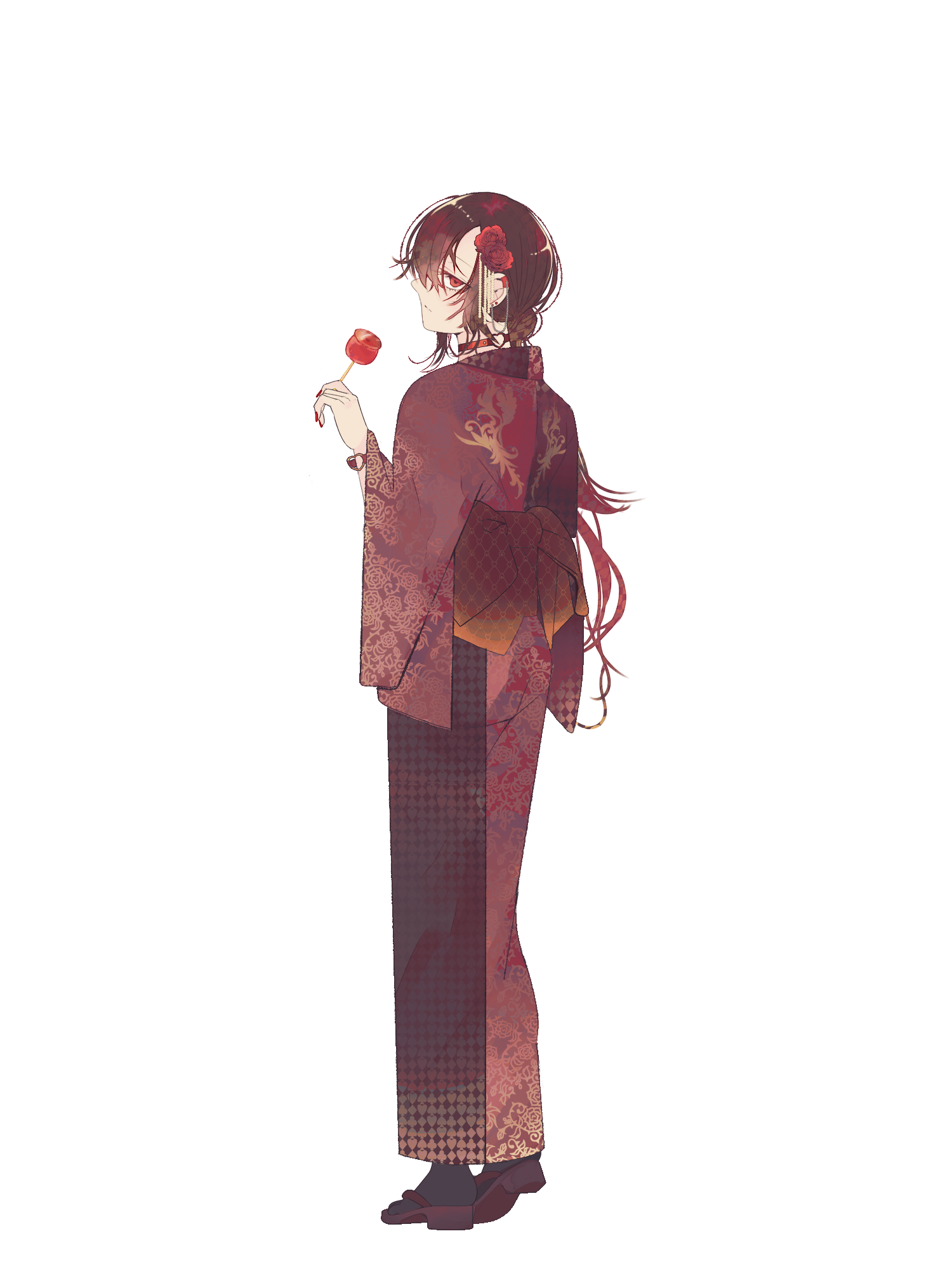 外見: 赤い瞳、赤茶の髪、色白の肌