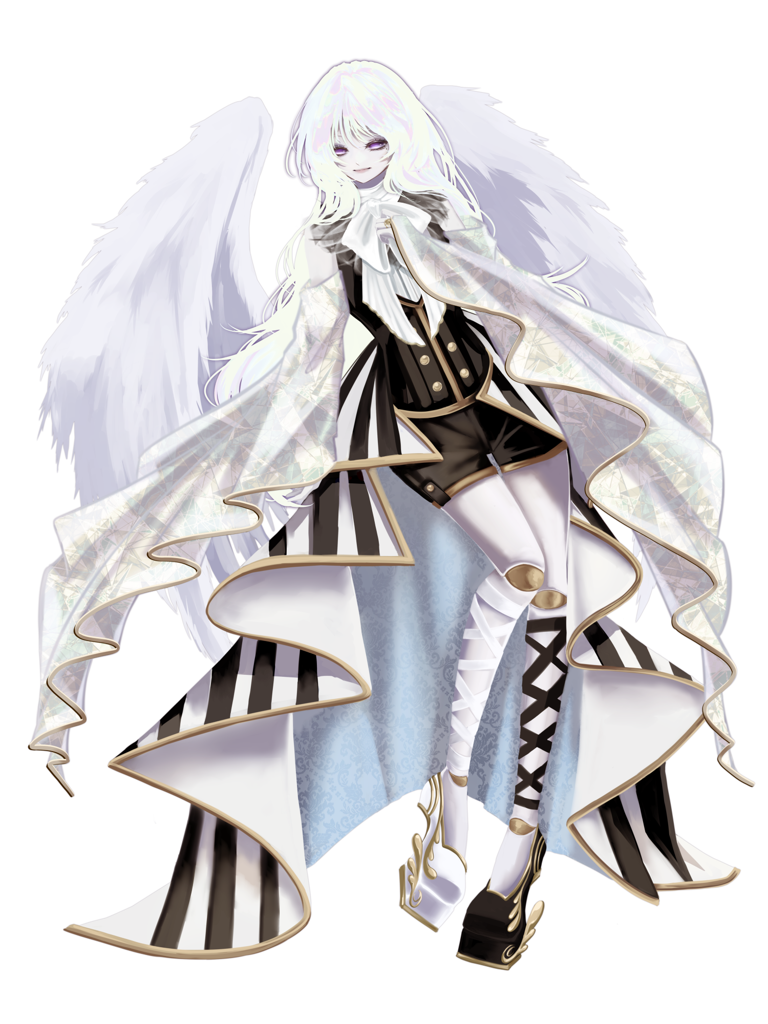 外見: 紫の瞳、銀髪、乳白色の肌