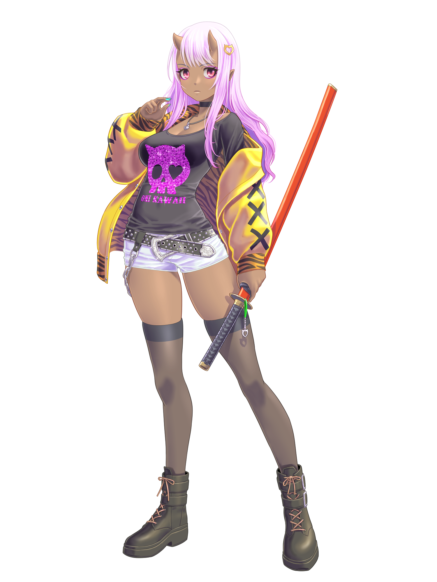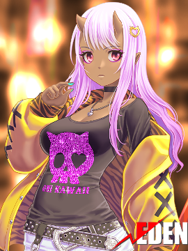 色濃く焼いたような褐色肌(地肌)に派手な色の髪や服装と、所謂黒ギャル風味な、遊び人的な人柄を彷彿とさせる容姿をしている。