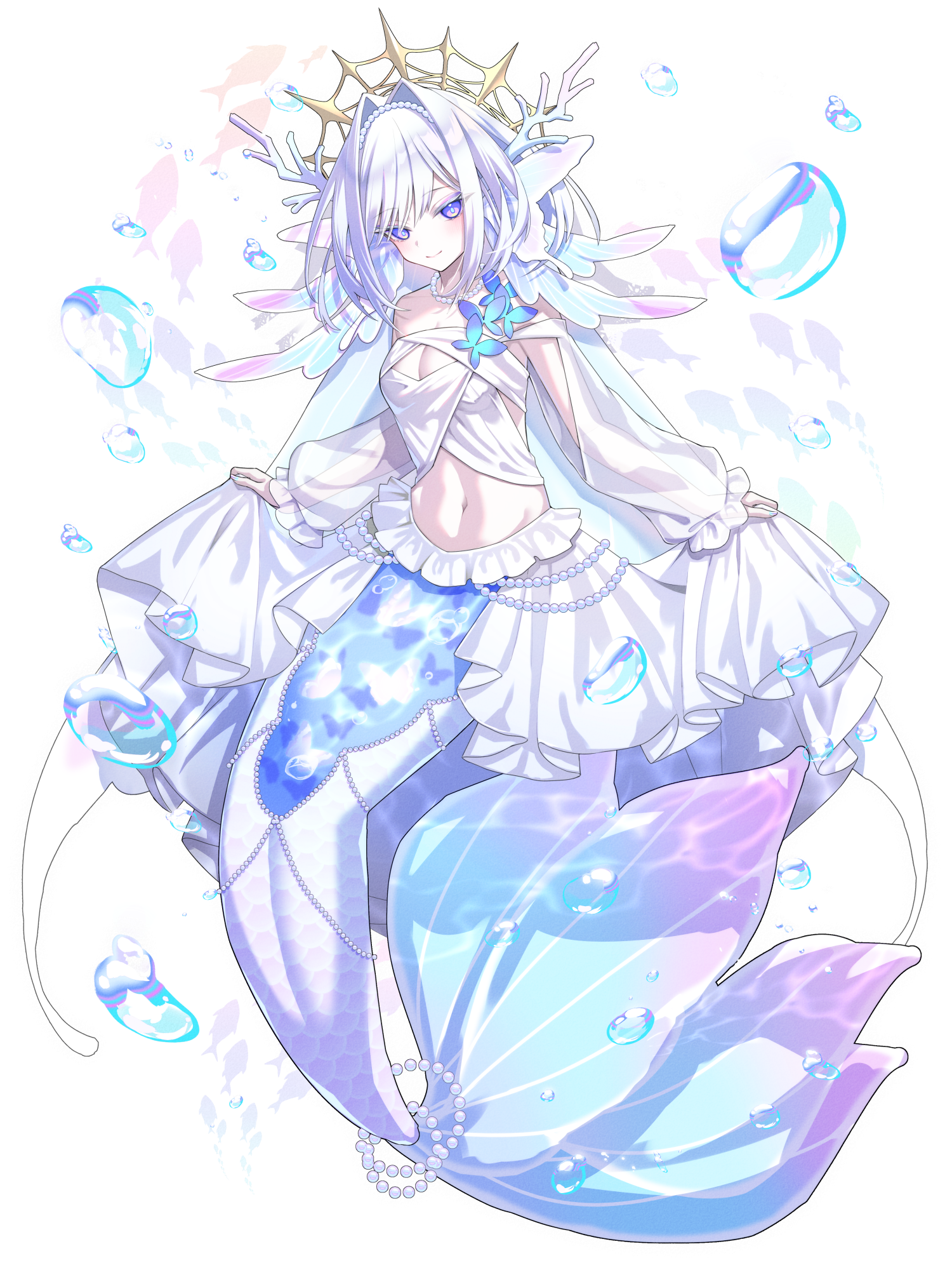🦋海の彼方、あるいは底に在ると伝えられる生命の還る場所──死者の魂が漂い進む、その海の一滴が意思を持ち、妖として形を取った存在。海とは端末として繋がっており、そこに揺蕩う魂を一時的に呼び出す事が出来る。 🦋……まぁ、本人としては大それた使命とか、目的意識みたいなものなんて何もないんだけど。🦋素敵なものを、綺麗な場所を見てみたい。 そんな思いで彼女は今日も気儘に世界を泳ぐ、夢を見る鳥のように。