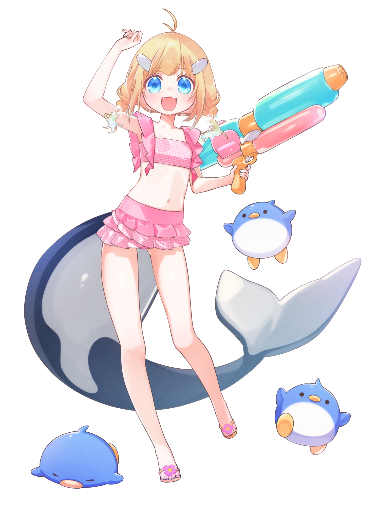 ■大きな尾びれのでっかい尻尾が特徴の、シャチを宿した獣人  ■人懐こく、ブレーキ知らず。気になれば突撃の気質持ち ■護霊は3匹のペンギン「てりやき」「てばさき」「つくね」。丸々とした造形が特徴の、3匹でやっと一人前な相棒。決して非常食を兼ねている訳では無いが、時折獲物を狙う目で主人から見られて……?  ■身長は150cmほど。体重はヒミツ。尻尾の質量分はやっぱり重いらしく知られたがらないそうな。