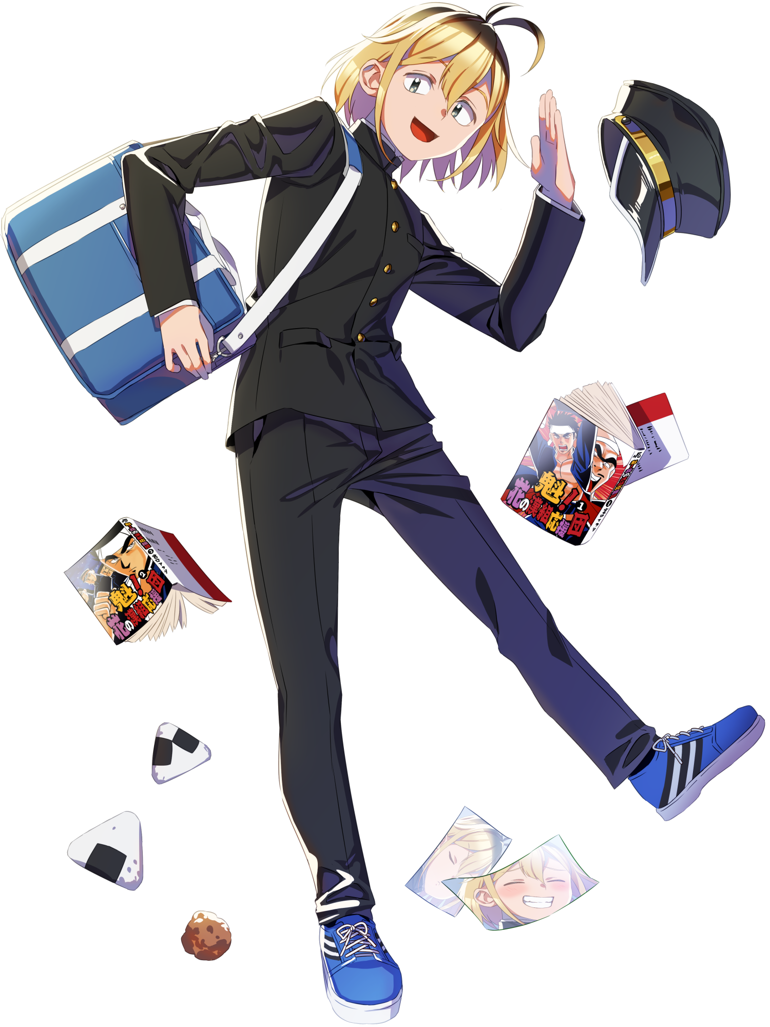 空地・海人のAnkerの腰巾着。/ ひょんなことから、海人に付きまと……付いてくるようになった中性的な高校生。私立|聖・断罪《セント ジャスティス》学院に在学中。/ 愛読書にしてバイブルは、昭和の破天荒なパワーと勢いに満ち溢れた往年の名作漫画『魁!花の漢組応援団』。/ おにぎりの呼び方は「握り飯」派(※その方がたぶんワイルドだから)。 最近、唐揚げが好物になった(※美味い唐揚げを食べたから)。