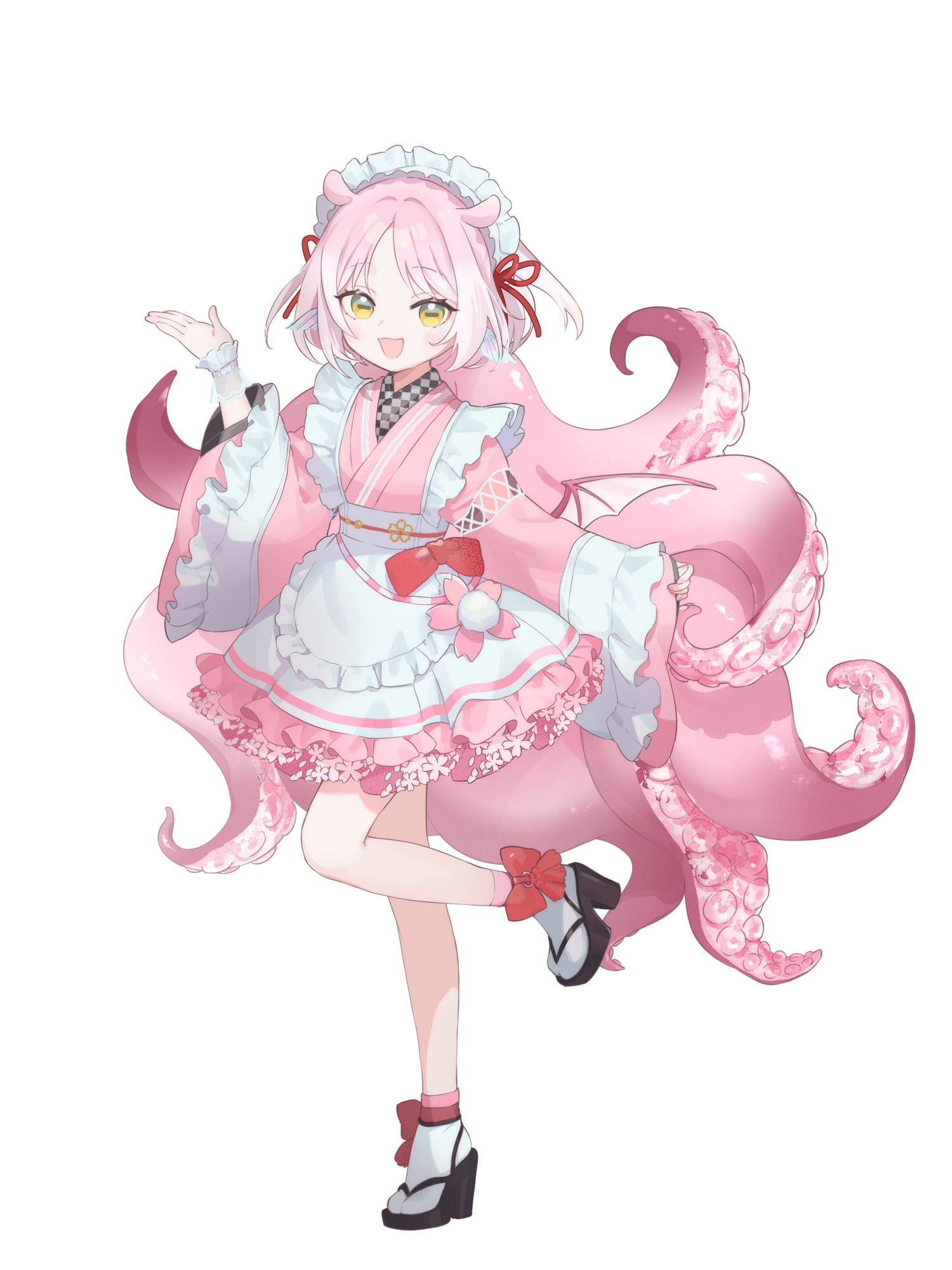 「あれ?また会いましたね!はい、ここでもバイトしてるんです。いえ、大変なんてとんでもない!お客様が喜んでくれることがわたしの幸せですから!」🐙蛸の妖を自称する蛸足髪の少女。自慢の髪を駆使して働く凄腕アルバイター。妖横丁のどのお店に行っても出会すアイドル的存在。迷い人はまず彼女の接客を受けることになるだろう🌸異常なほど他人に尽くしたがる奉仕の鬼。拾ってくれた妖横丁のみんなに恩返しがしたいから。