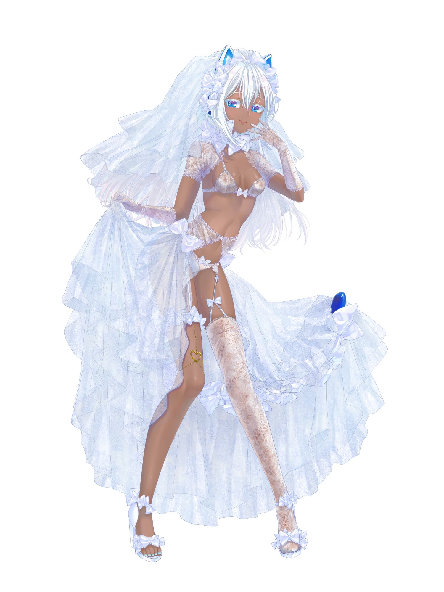 外見: 青い瞳、白い髪、焦茶色の肌