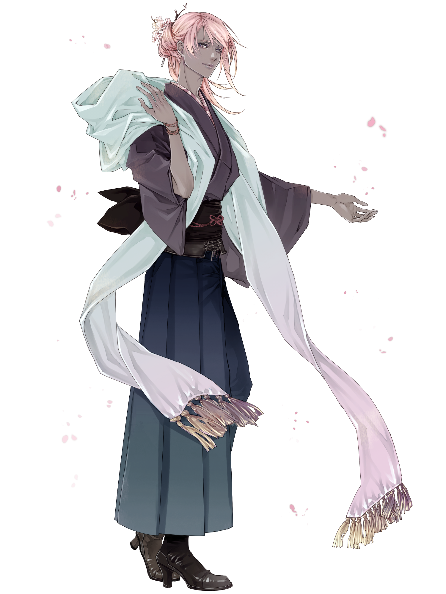 外見: 銀の瞳、ピンクの髪、色黒の肌