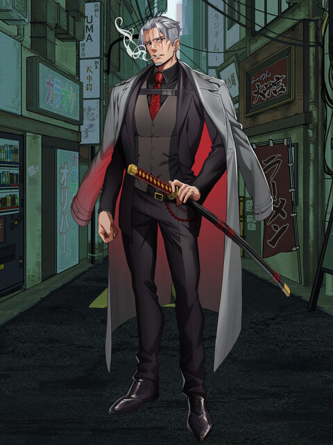 ♜2m近い巨躯に左眼を縦に通る傷が目立つ警視庁異能捜査官の男。♖或日、吸血鬼の少女を拾った。どうやら年齢も名前も分からないという。だからくれてやった。それだけの事♜凶暴な一面と冷静沈着な二面性を持っている。普段は大人しく、仕事を押し付けられたら断れないイエスマン。人の上に立つような人柄ではない為昇進を断っている。楽にやりたい。♖趣味はチェス、と散財になった。♜♖