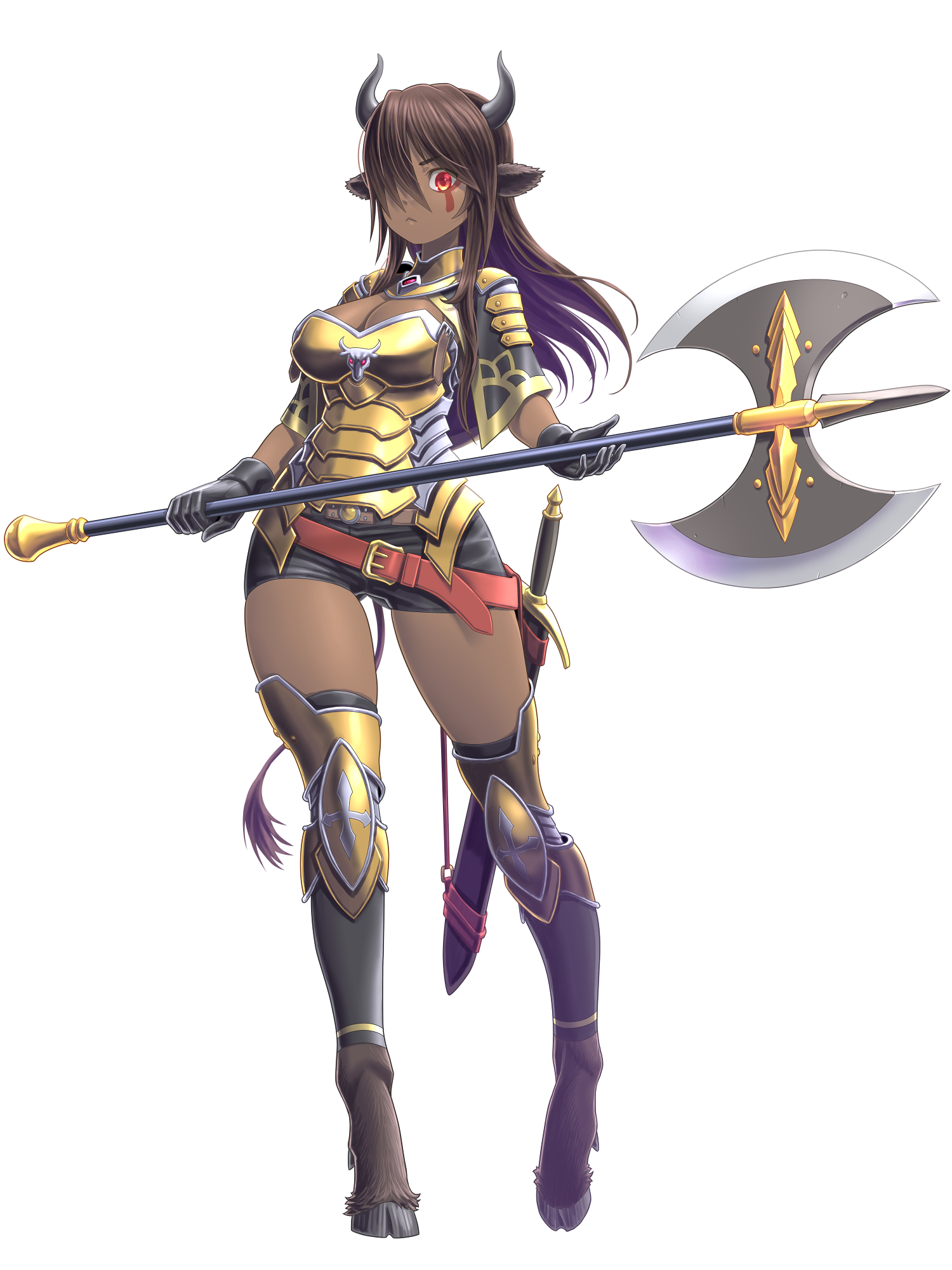 ◆平日はコンビニ【雷蹄の尻尾】or移動コンビニ屋台【雷蹄の翼】で働いているミノタウロス族の週末冒険者。モンスターやダンジョンの観察を趣味にしている。◆温厚で冷静沈着な性格。感情を表に出したり考えを言葉にするのが苦手で愛想と口数は少なめ。◆酒を見ればすぐに飲もうとする、酒好きかつ酒豪。
