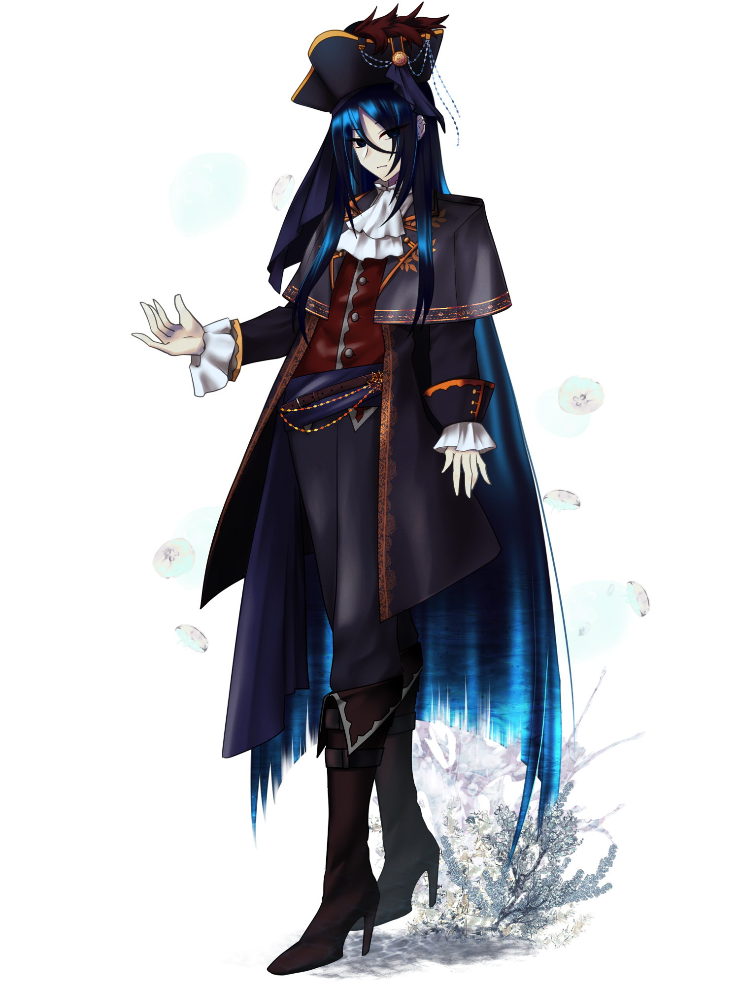 外見二十代。精神=年齢。実年齢不詳、元海賊。夜の海にぽつり見える灯り。船かと思えばヒトであり――船の嵌め殺し窓を、船乗りは『デッドライト』と呼ぶ。/本来は船霊の類。欠落は性別。海に出れば船を惑わせ座礁・難破させ、地上を歩けば足元、海底が現れ花咲き絶えていく。『惑わしはしていないのです。憑いている者が悪く』――海魔に気に入られた幽霊船長、海に出ること能わずや。然し√EDEN、ここは宛ら海ではないか。