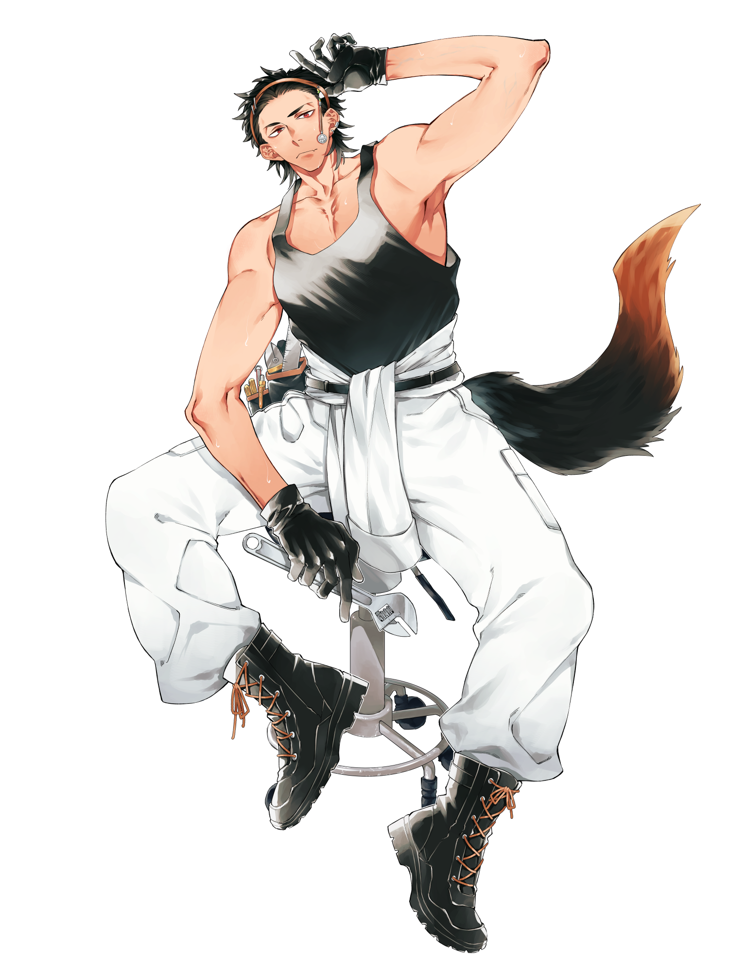 利益を生まない、自身のためだけの工房を構える狼獣人の青年。工作が大好きで、自身の浪漫を形にするために様々なものを作り、改造し、積み上げている。興味を持ってくれた人にそれを売ることもあるが、基本的には貧乏。アルバイトをしてお金を稼ぎ、どうにか日々を過ごしている。// 性格はとにかく楽観的。裏表がほぼなく、人を褒めたりするのにも照れはない。明るく常にハイテンションだが、工作の際は真剣な時も…あるかも?